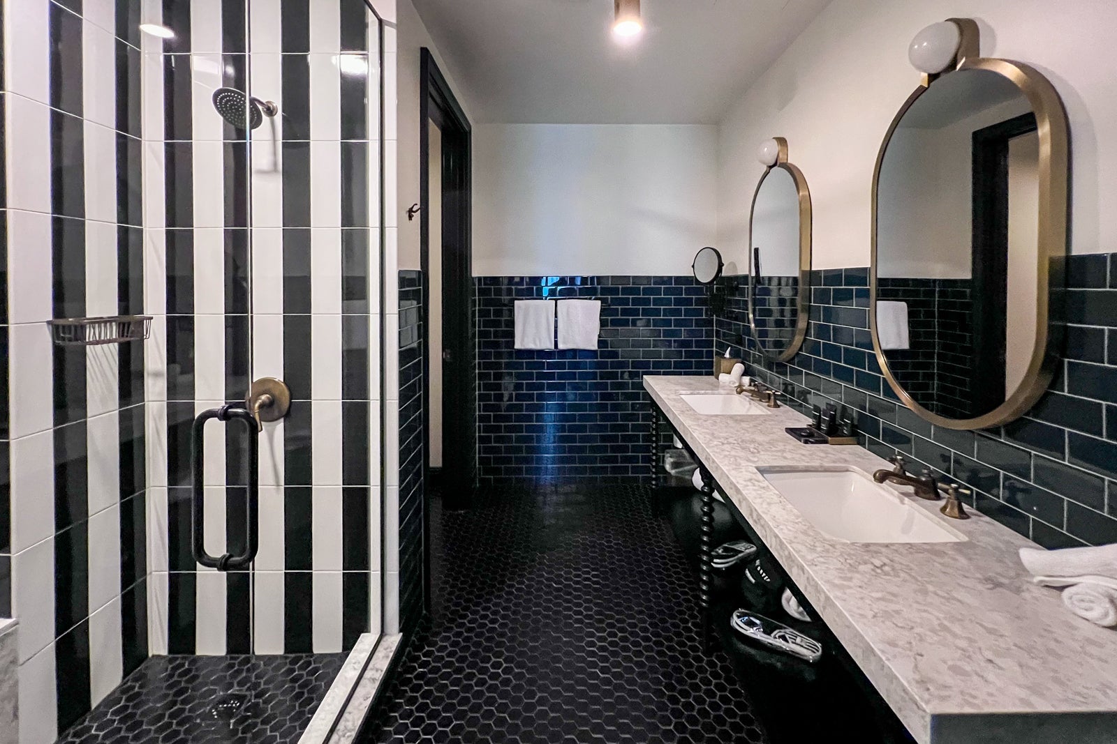 Black and white subway tiles alongside two bronze-brushed mirrors gave the space an elevated aesthetic, and it had a separate water closet. I'm not exaggerating when I say the bathroom was not much smaller than my entry-level guest room at the Dream Midtown earlier this summer.