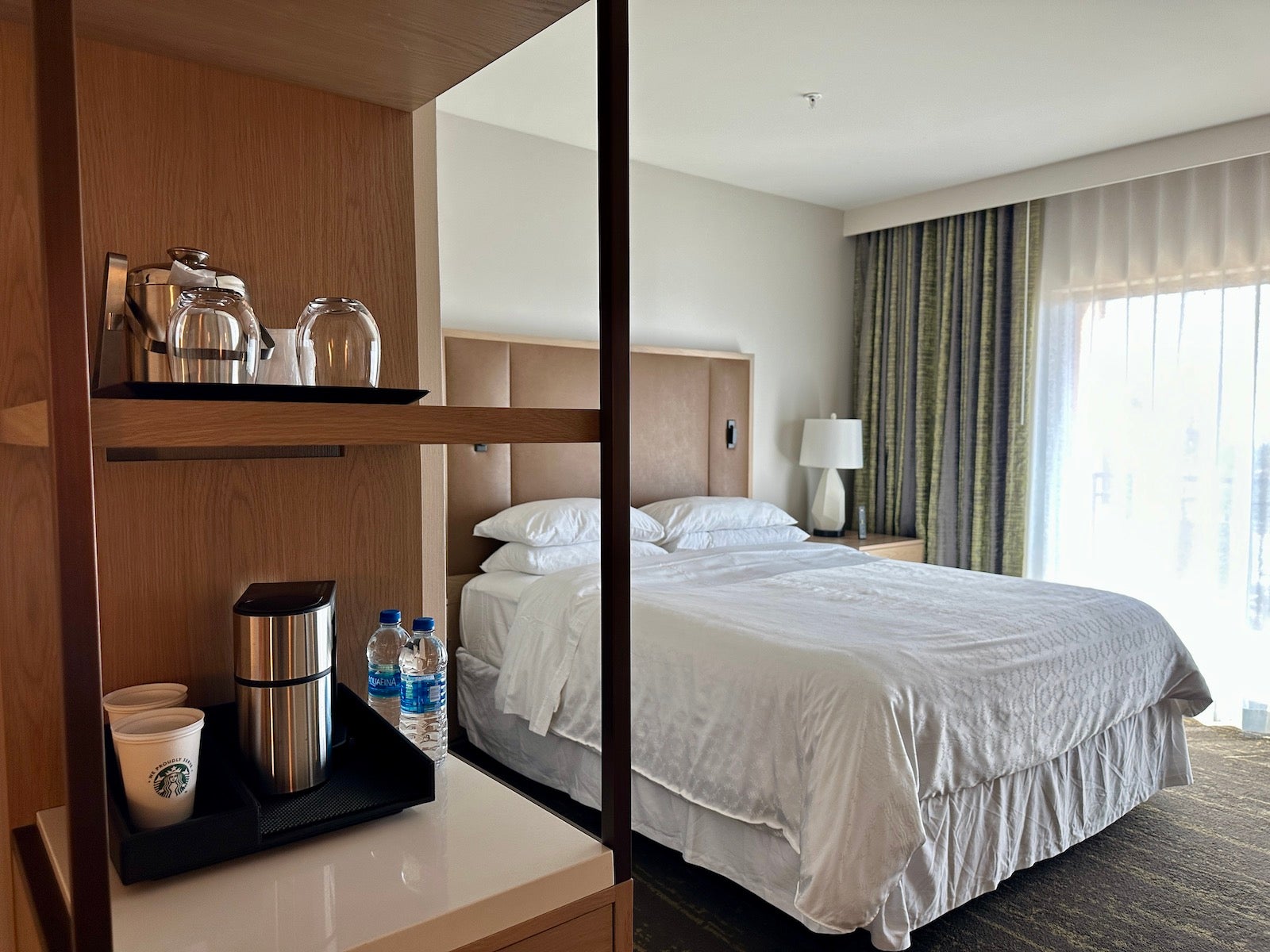 Guest rooms are bright and spacious, and some have views of the Pacific Ocean. In addition to standard rooms, the Sheraton Carlsbad Resort & Spa offers suites with one king bed in the primary bedroom and two twin beds in the second bedroom.