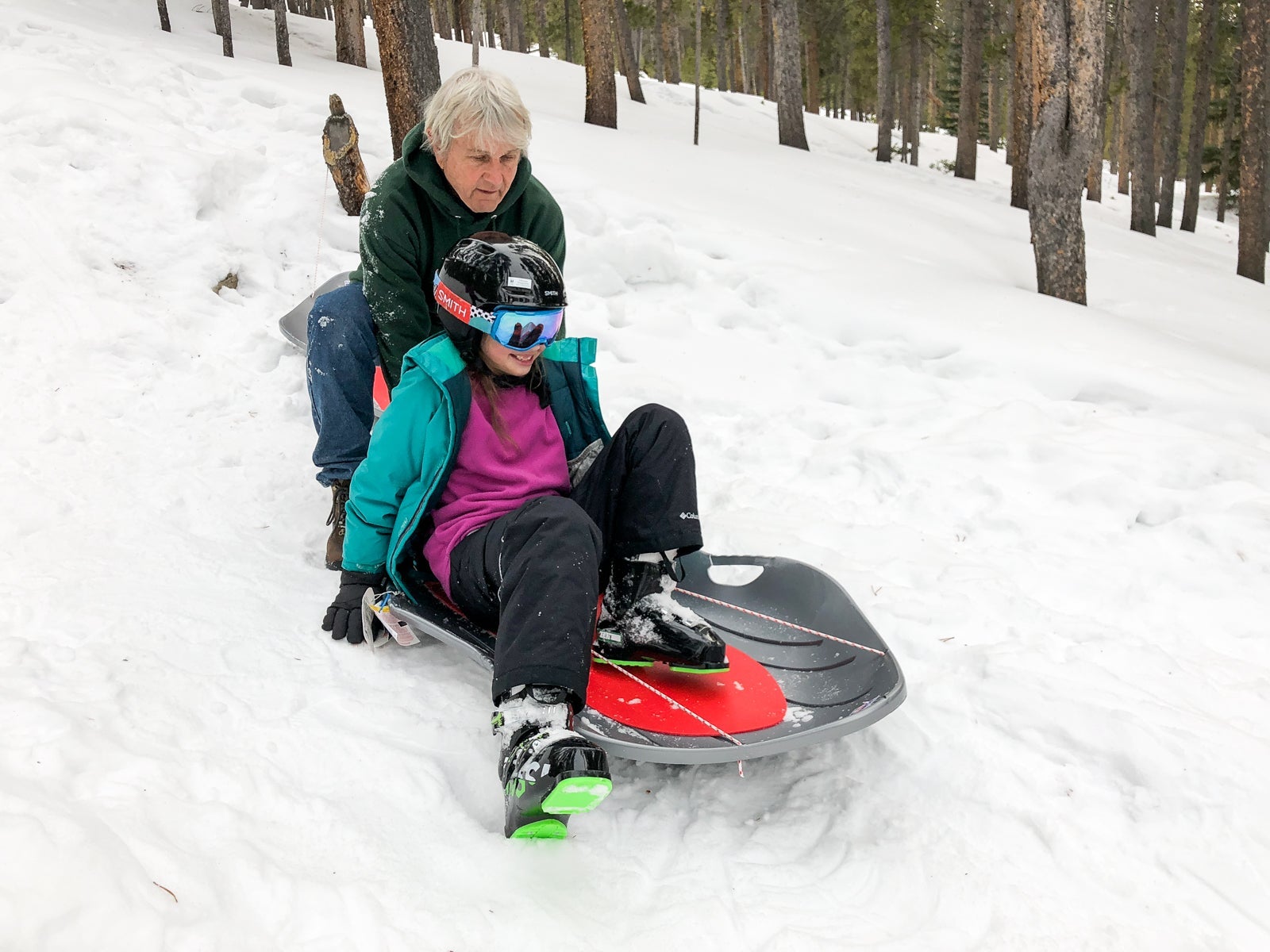 In a snowy location, a plastic sled or even snowshoes are a fun treat to use.