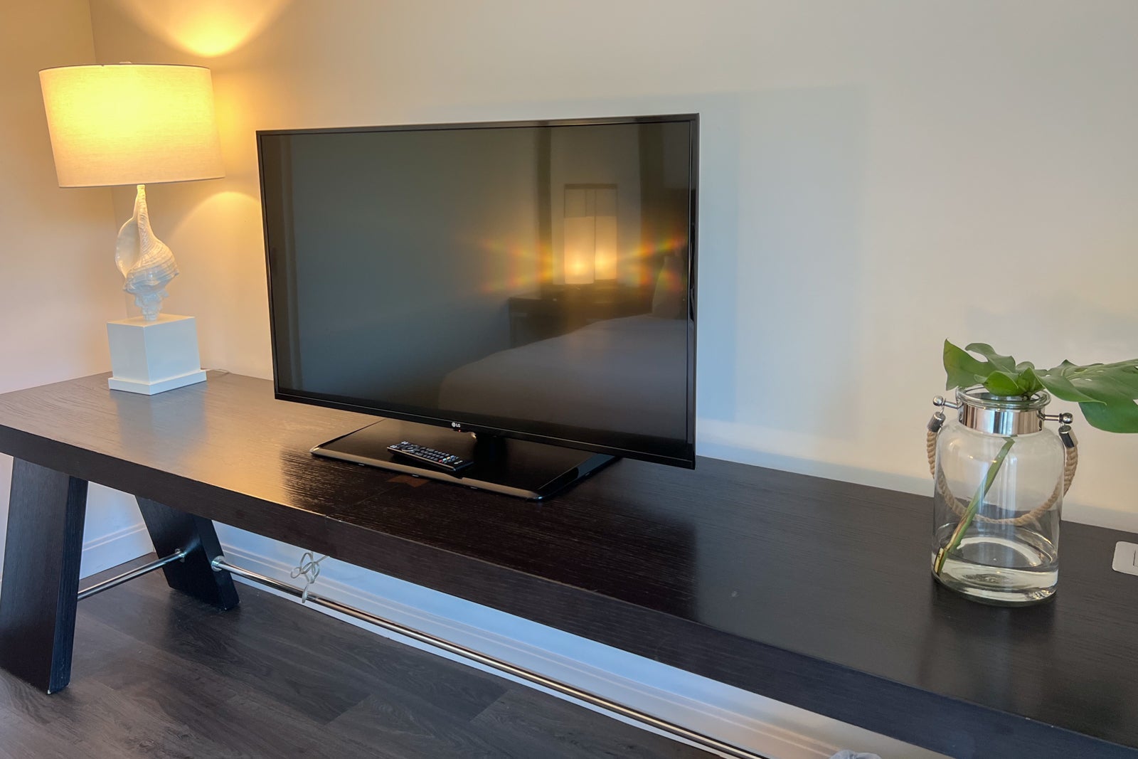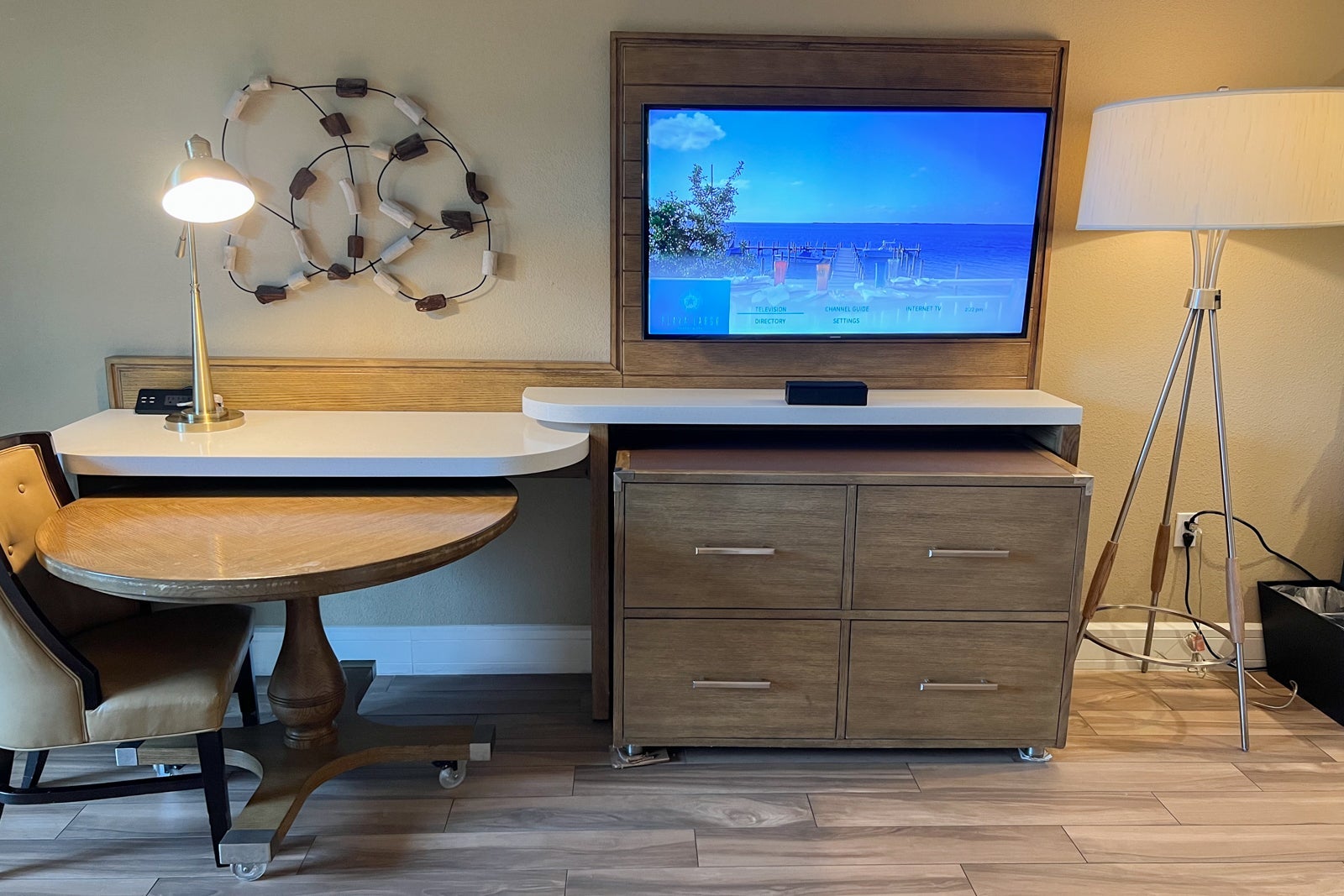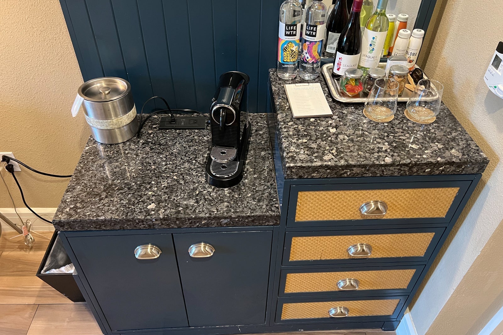 There was plenty of counter space and outlets, as well as a bathroom thoughtfully designed to be just as functional as it was beautiful. I loved the modern decor in white, tan and blue hues, which felt like an updated version of your stereotypical beach hotel. The comfortable beds were a welcome bonus, too.