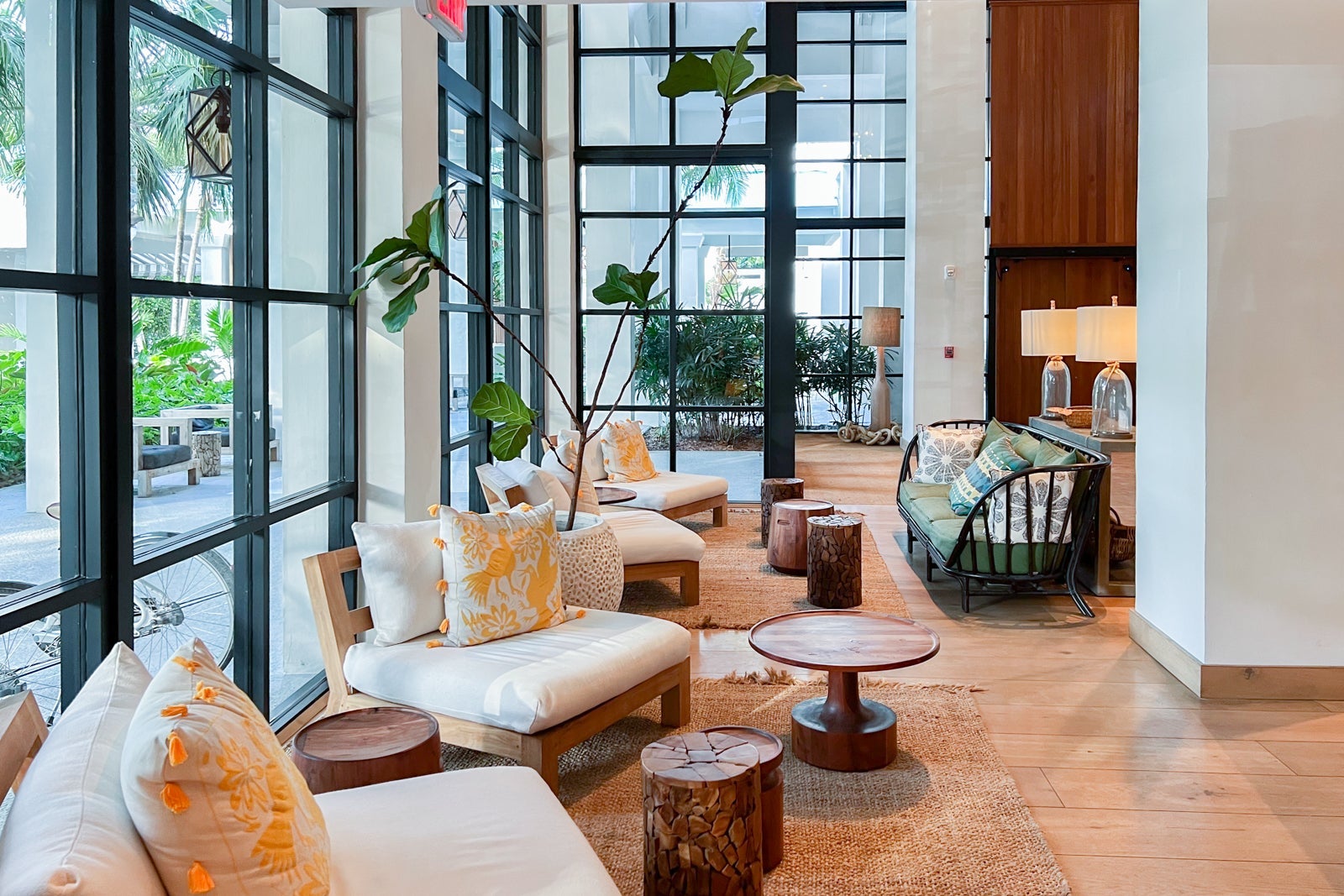 Odds are high that you will feel like you are in for quite a treat when you walk into the massive lobby at Baker's Cay. Offering floor-to-high-ceiling windows everywhere you turn, the sleek space features a cool coastal vibe, with modern light fixtures, fresh furniture and even a fun library with a pool table. It's the perfect place to curl up in when you have some time to kill, especially on days when rain showers make an appearance outside.