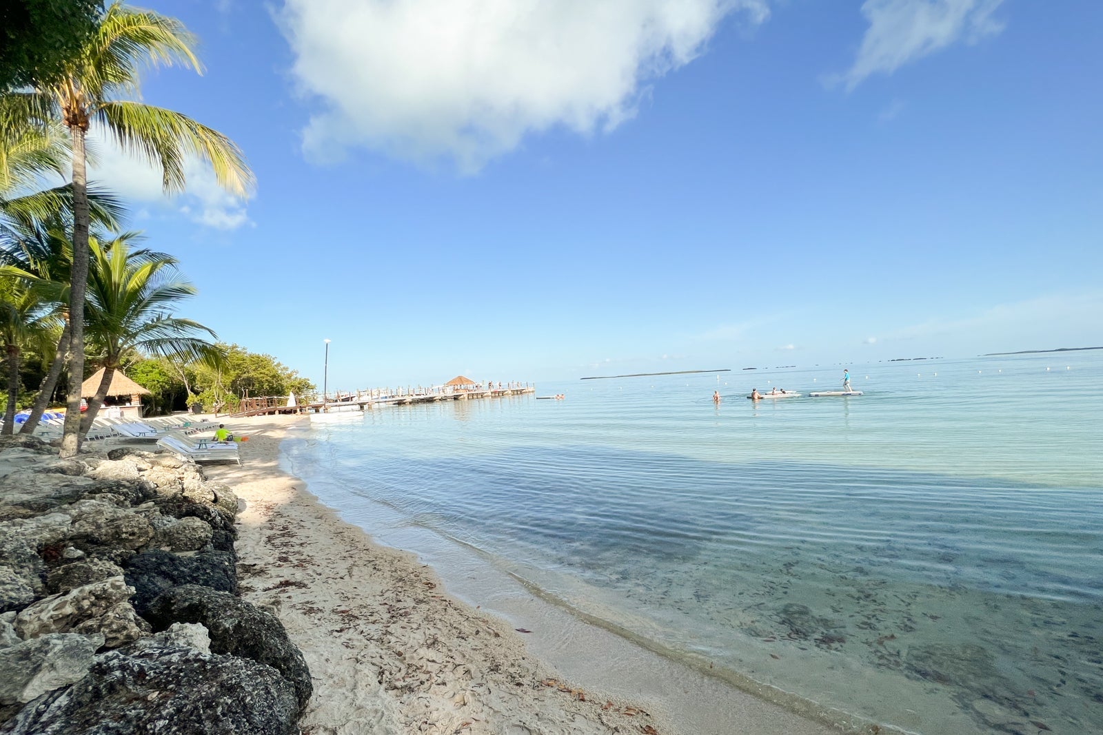 At first glance, the beach looked fairly traditional, with a gently sloping white-sand shore and mostly calm water. However, there were some welcome surprises, too, including a few nooks with hammocks accessible via a trail that led guests away from the main beach area.