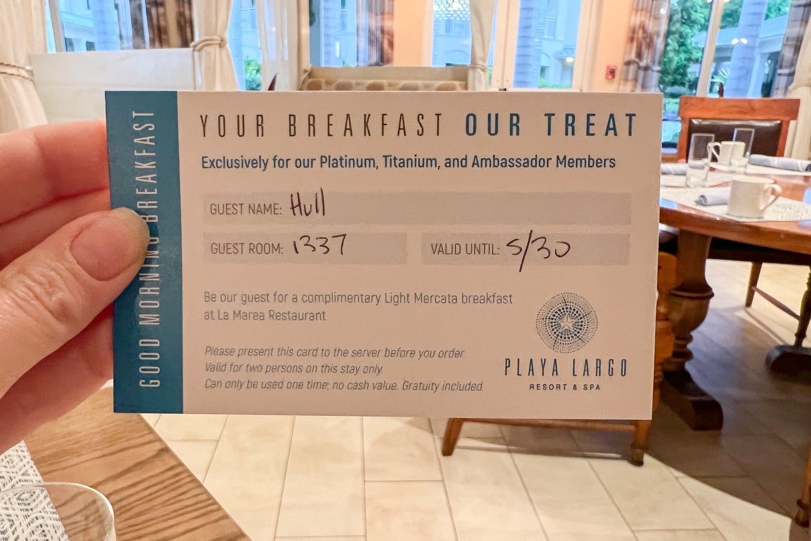 Like Baker's Cay, Playa Largo offers a food and beverage benefit to guests with at least Marriott Platinum Elite status. At this property, that meant complimentary breakfast and two evening cocktails during the resort's nightly sunset celebration.