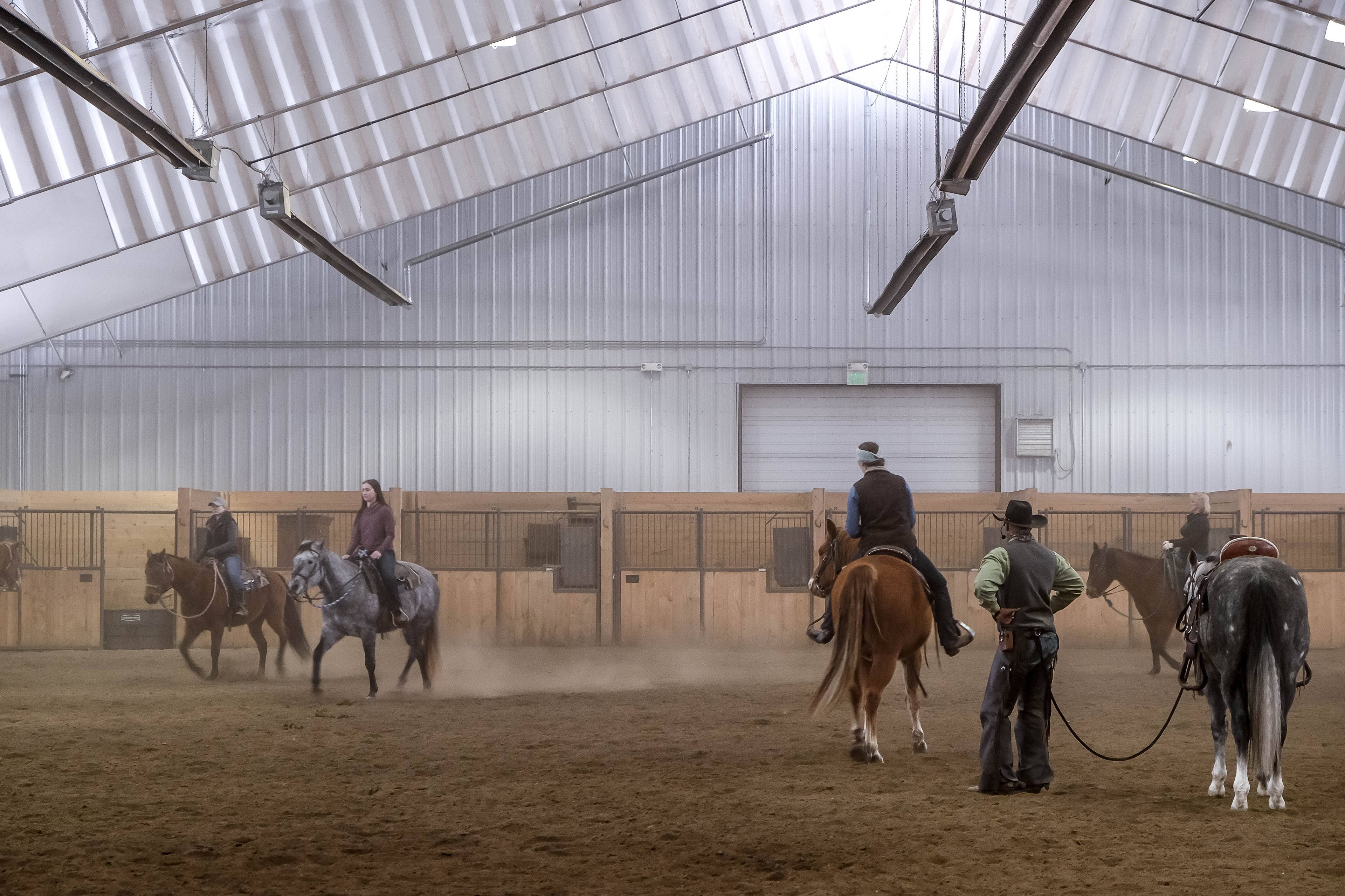 The heated indoor arena provides a great opportunity for guests to tune up their riding skills during the daily horsemanship clinics. (Photo courtesy of Vista Verde)