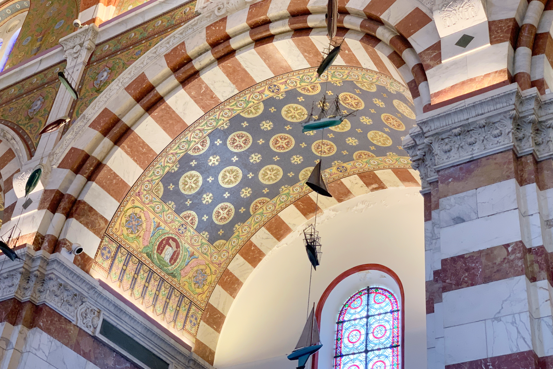 Notre Dame de la Garde Cathedral rises over the city and is a marvel to explore. Fortunately, there's a tourist "petit train" that takes you up and down the steep hill to the cathedral. My 12-year-old daughter appreciated both the grandeur of Notre Dame de la Garde and the amazing views. She got a kick out of the toy boats and planes hanging from the ceiling as symbols of Notre Dame "keeping watch" over voyagers.