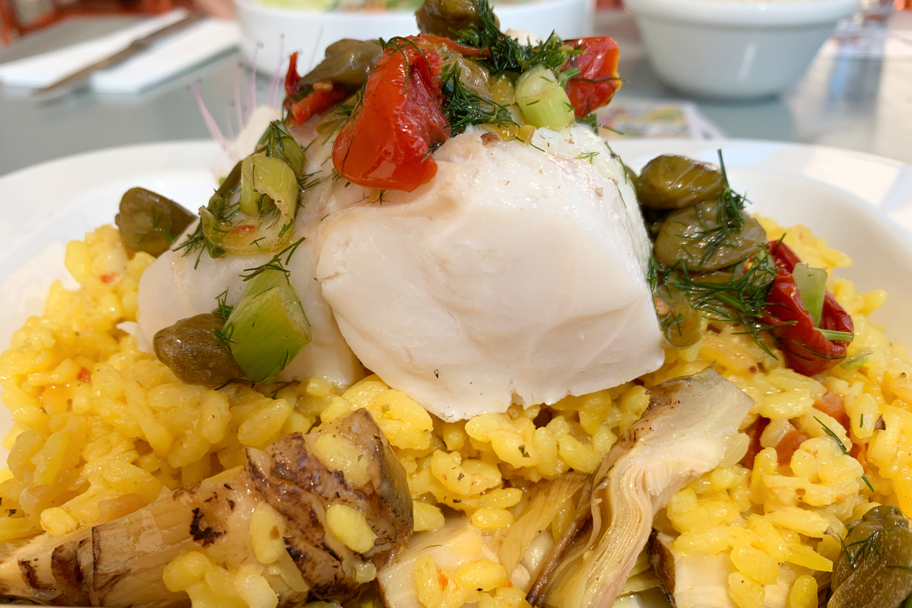 We dined at two separate spots, the Mucem restaurant and the cafe at Fort St. Jean, and both exceeded expectations for both the venue and the price. The dish below was the 18-euro daily special, which included a salad and drink. The fish was so fresh you almost wanted to look for the hook, and the saffron-infused rice made the dish taste like a deconstructed bouillabaisse.
