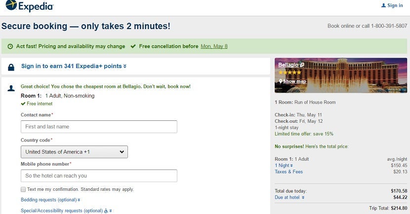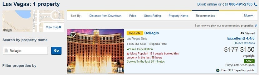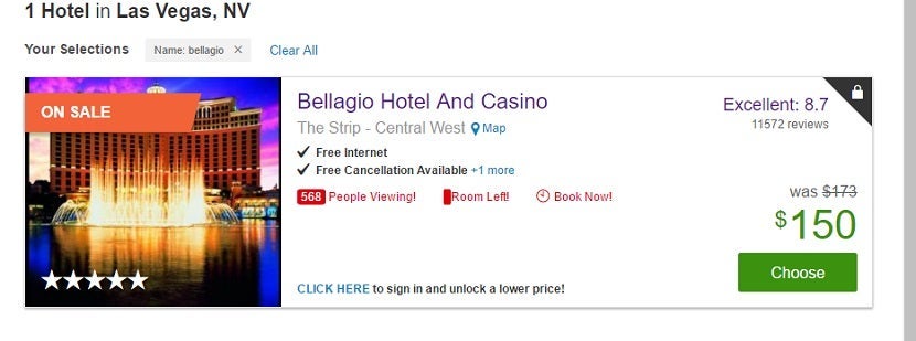 I again looked at the Bellagio hotel to see how transparent Expedia group sites are.