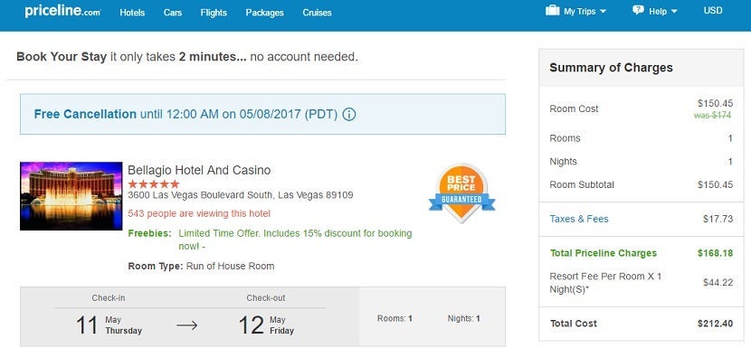 But at least the second screen includes the "daily hotel fee," although it's unclear why it's even higher than the one charged by Bellagio or the Expedia group sites.