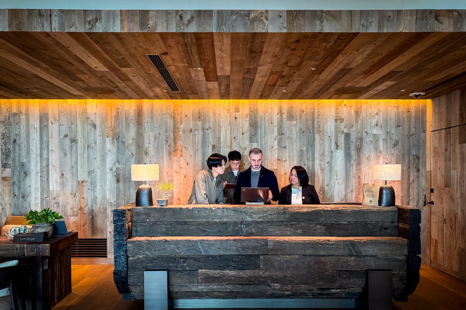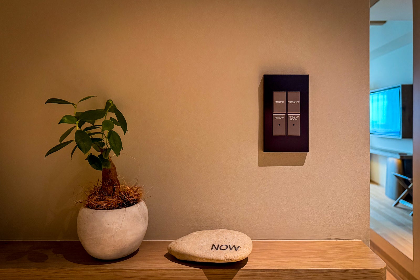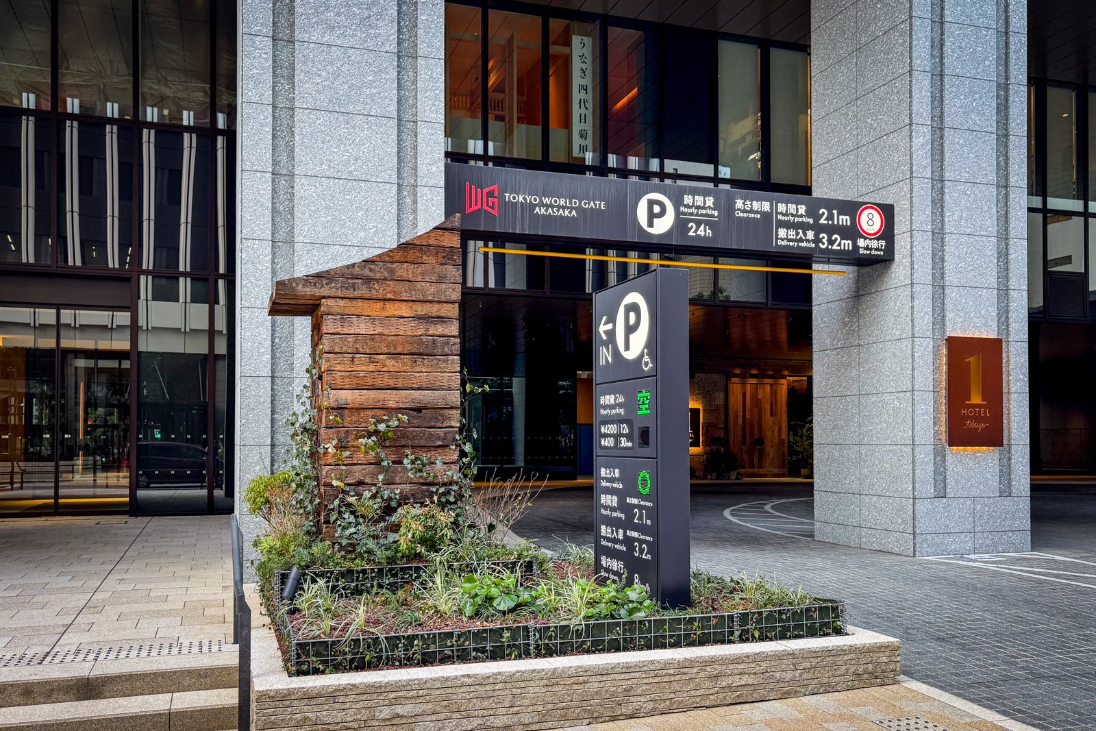 Pulling up to the new Akasaka Trust Tower, you'd be forgiven for thinking you'd arrived at merely another soaring office tower in one of the city's busy business districts. But a closer look reveals signature 1 Hotel branding — a giant "1" made from beams of salvaged wood, a backlit distressed-metal sign and a small reception area with carefully placed potted plants and Oya stone boulders that mirror those of the stonework of the nearby Imperial Palace's moat.