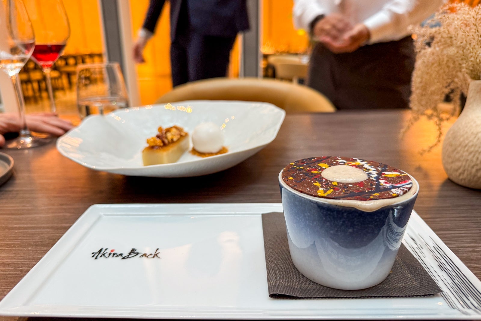 Leave room for sumptuous desserts like Chocolate in a Cup with spongecake, banana foam and vanilla bean ice cream ($21.50).