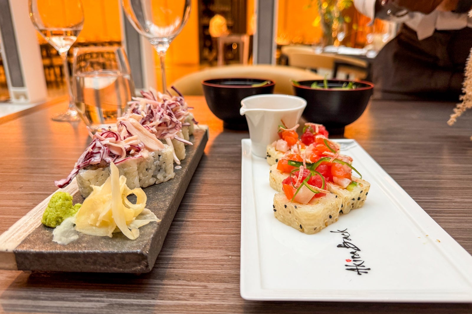 The hotel's main restaurant comes courtesy of South Korea-born, Colorado-raised celebrity chef Akira Back and sits at the heart of the hotel, one level below the street and accessible by elevator or a dramatic glass-framed spiral staircase.