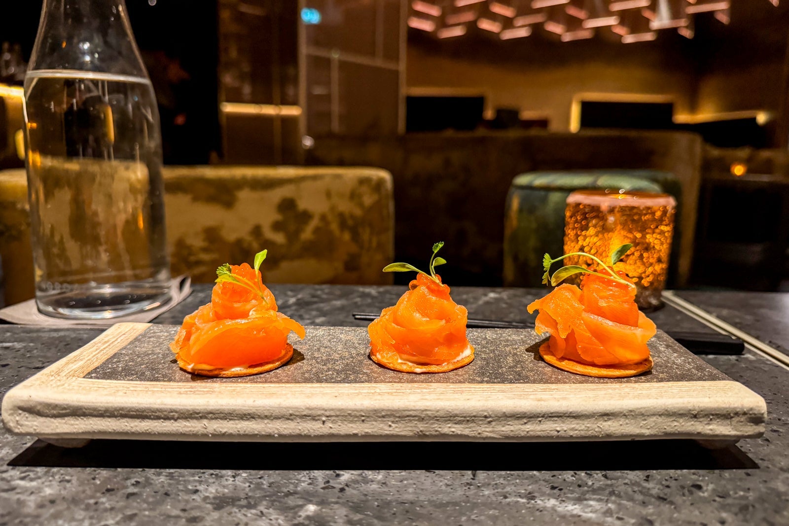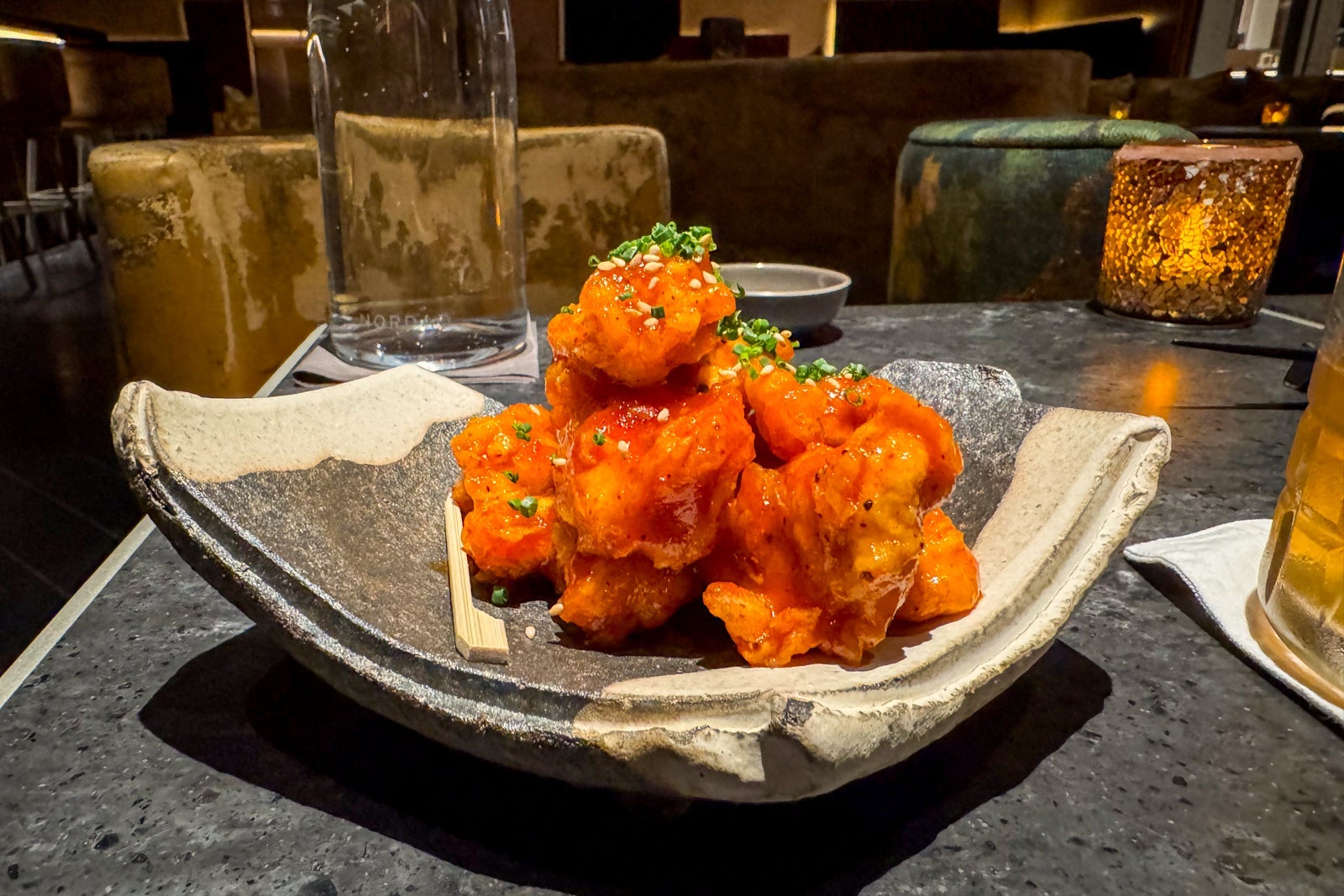 The savory sweetness of the latter pairs well with the couple of bar bites I ordered including piping-hot Korean fried chicken with gochujang red pepper paste ($19) and silky smoked salmon tostadas ($18).