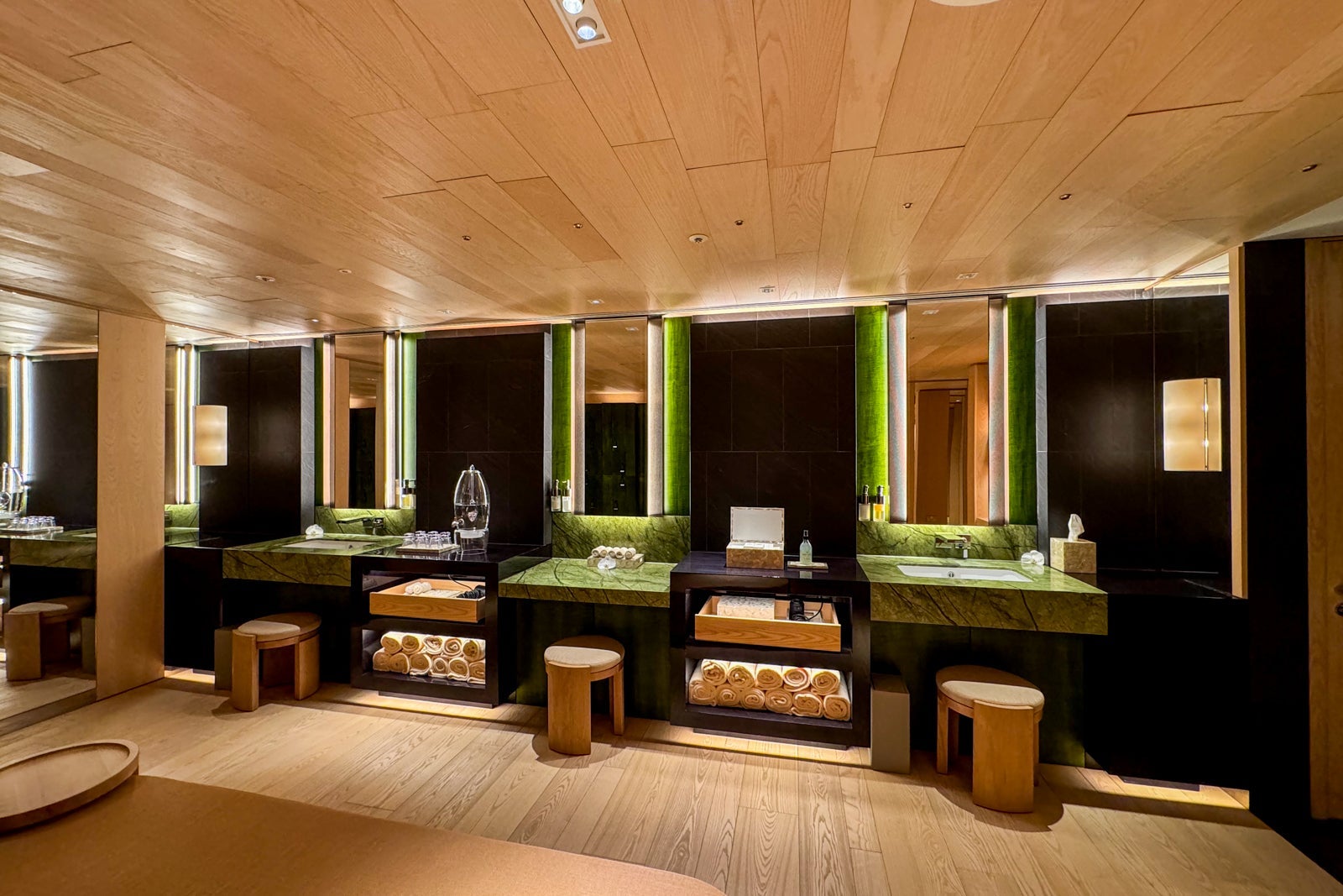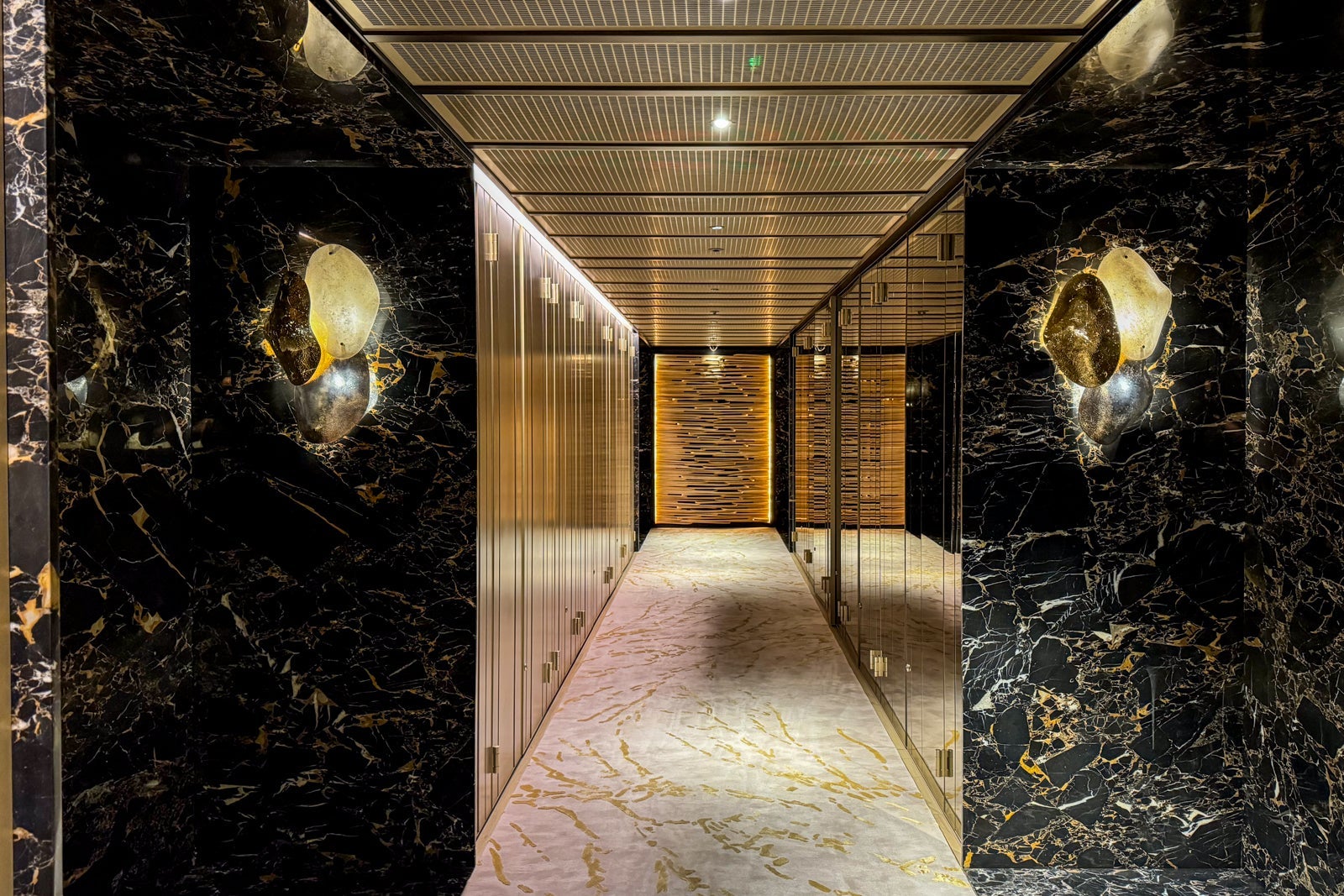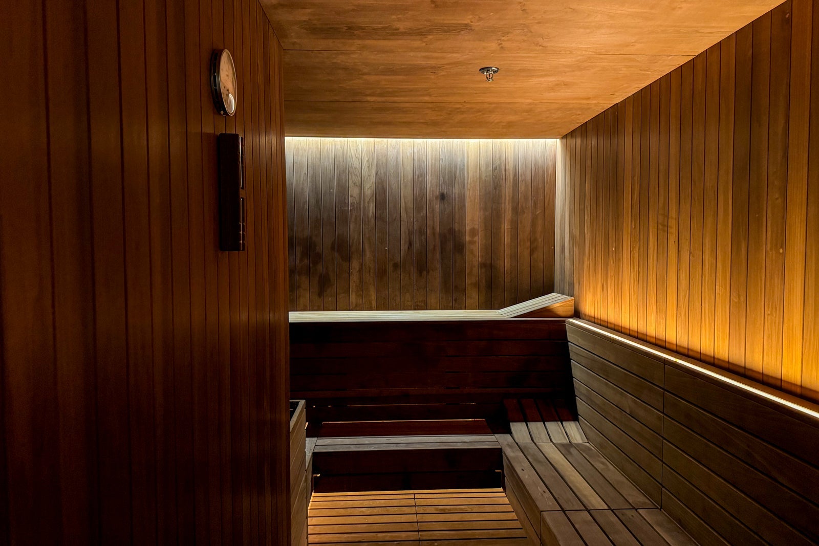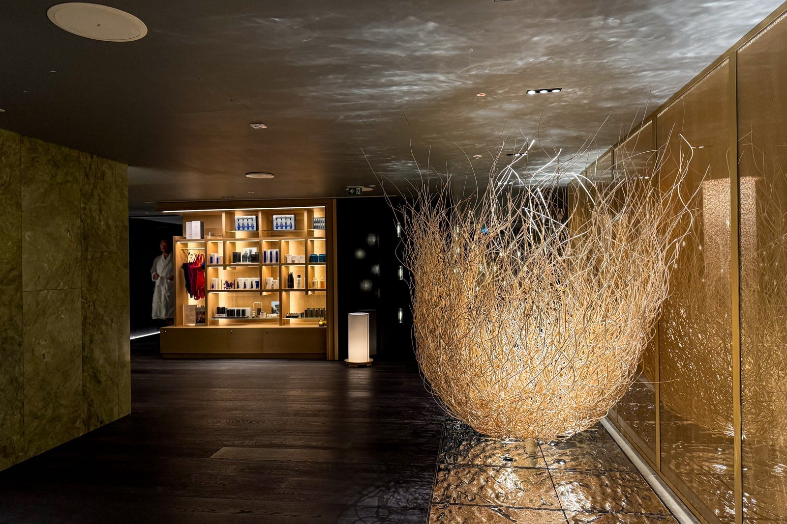 Bring your bathing suit because you won't want to skip a dip in the 25-meter pool, which has different dark and light sections and is ingeniously lit with reflective surfaces so it feels like you're floating amongst the stars. The wet area also includes a sauna, steam room, small therapy pools and loungers.