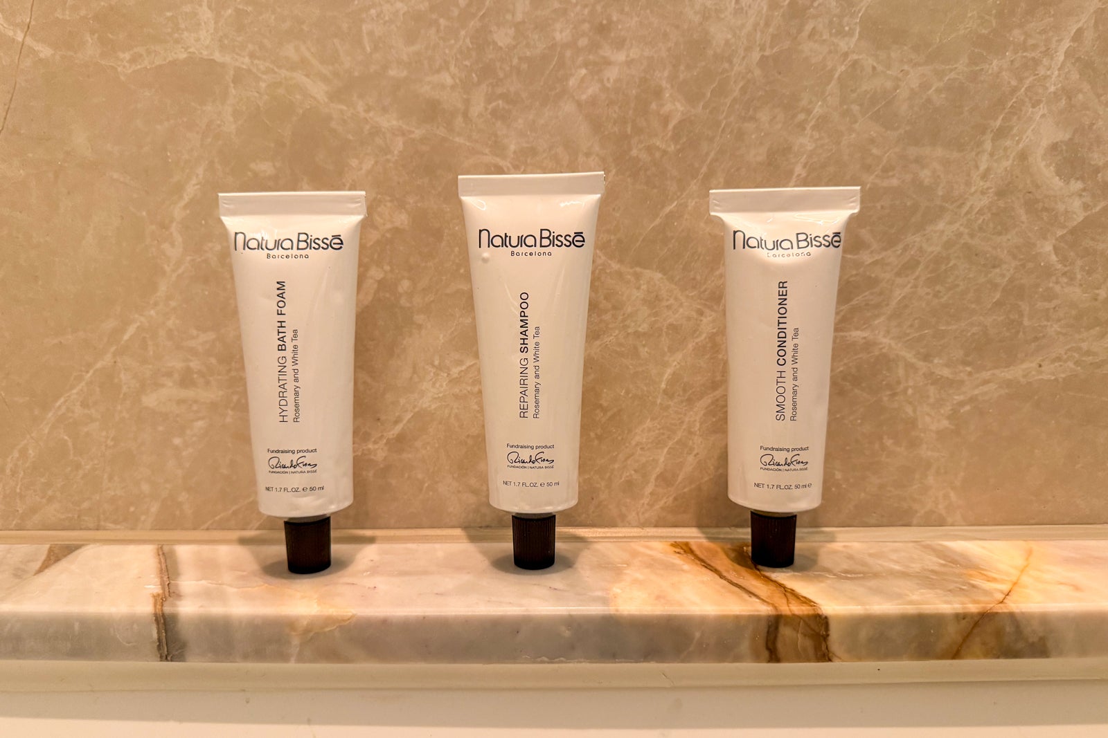 Next to that was a water closet with a Toto toilet and a separate walk-in shower with more Natura Bisse amenities along with overhead and handheld shower heads.