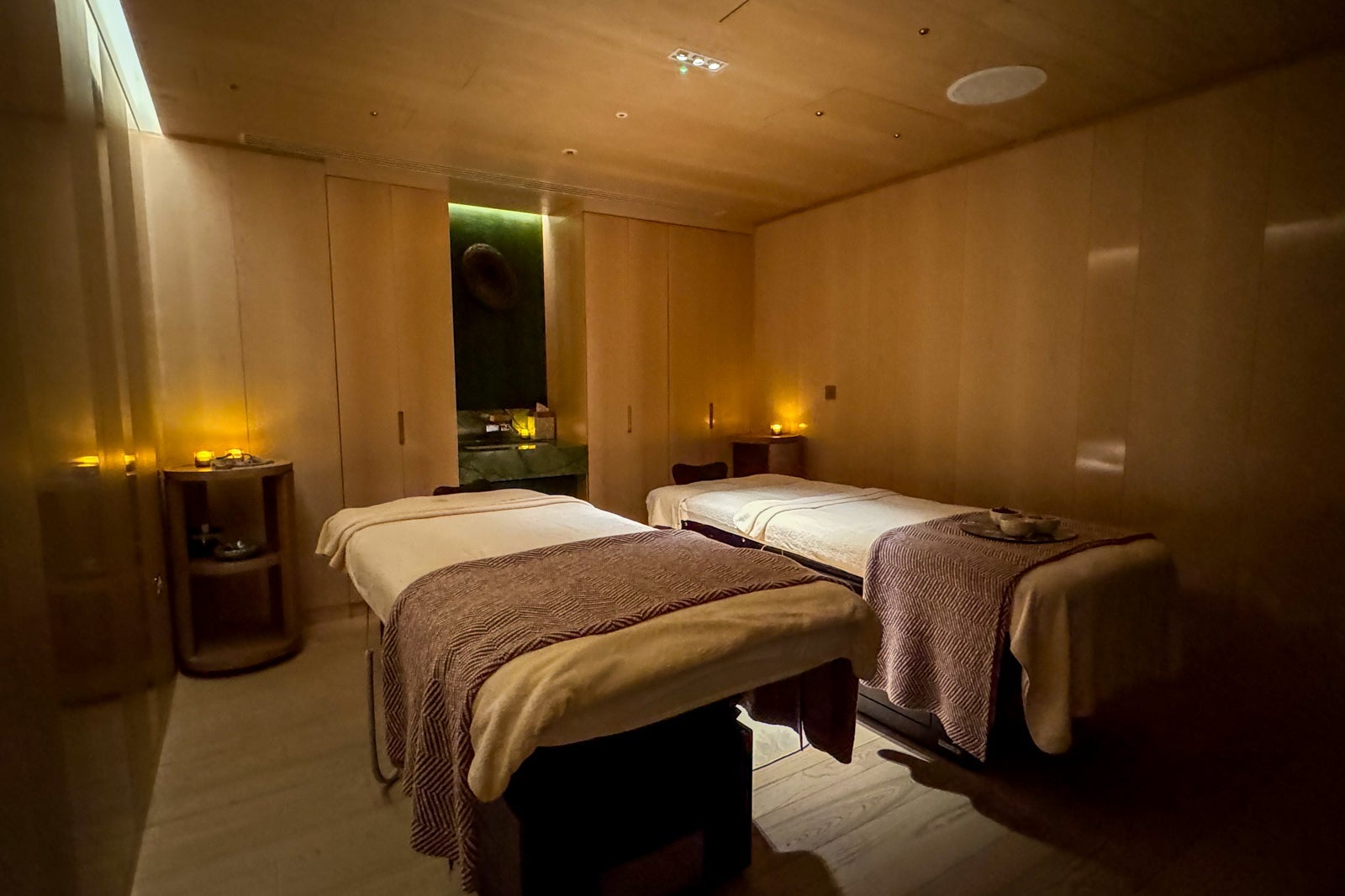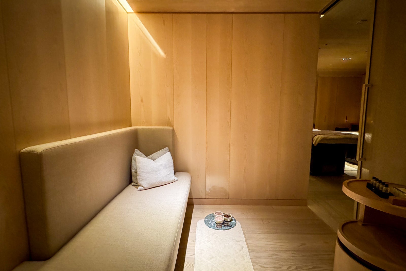 The spa has just two treatment rooms, including a double suite with blond wood paneling and flooring. Basically, you pick the amount of time you want to spend in the spa (an hour, 90 minutes, two hours, and so on) and can create a tailor-made experience for yourself that might include massage, facials, body wraps and more.