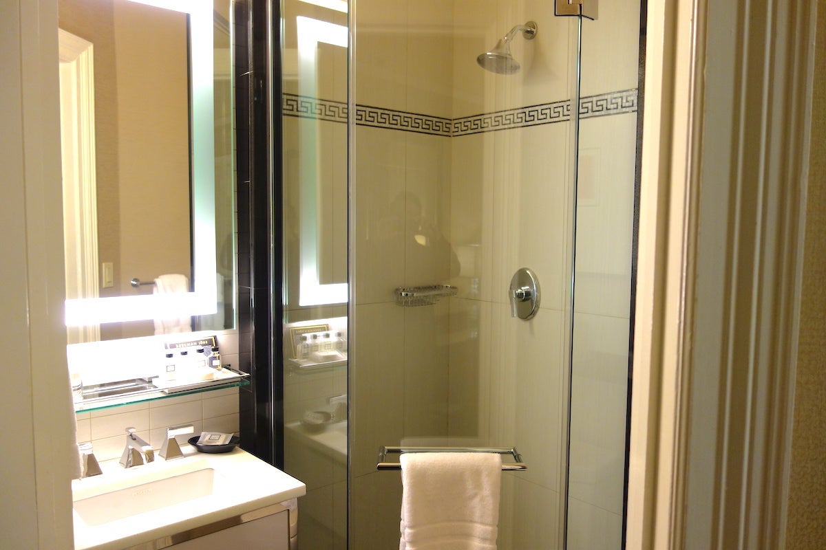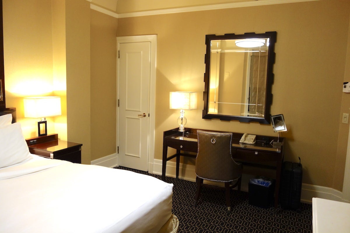 There were things I liked about the room and things that I thought the hotel just got wrong. On the positive side, it was spacious and the amenities were nice. However, the bathroom was just plain tiny, the décor felt dark and worn-out, and the historic elements of the architecture were not incorporated in any meaningful way.