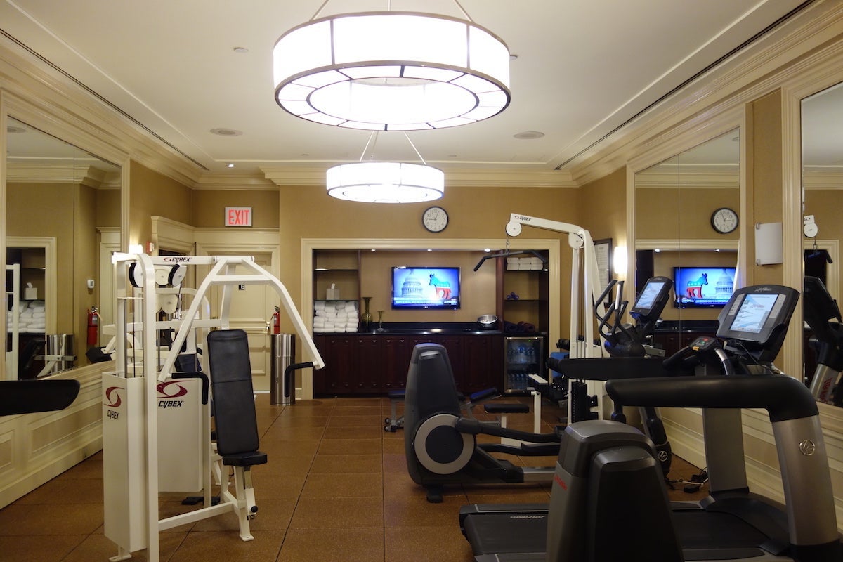 Other than that, the only amenities to note were a small work center with two desktop computers set in a dark corner and the little fitness center, which had some old weight machines and four cardio machines. Plus a black-stone fireplace, because, well, this was The Algonquin.