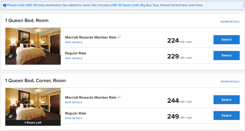 To be honest, I thought this was rather annoying and would have preferred that the room rate on the Marriott site reflect the total including the destination fee rather than shocking me with a jump of over $65 on the final booking page.