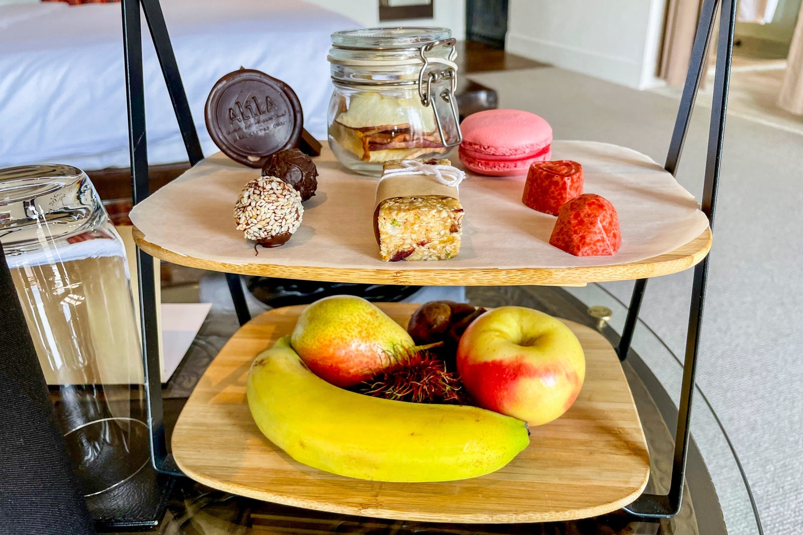 The property had a welcome amenity of fruit, chocolates and snacks (but no alcohol) waiting for me.