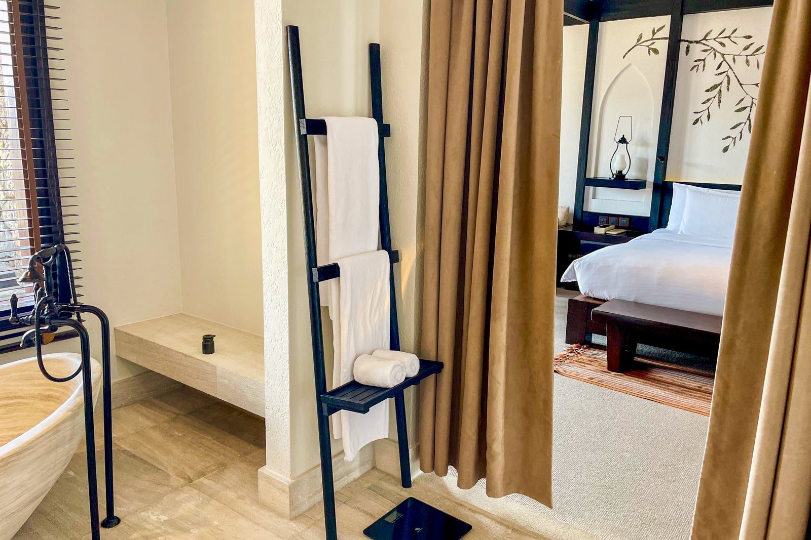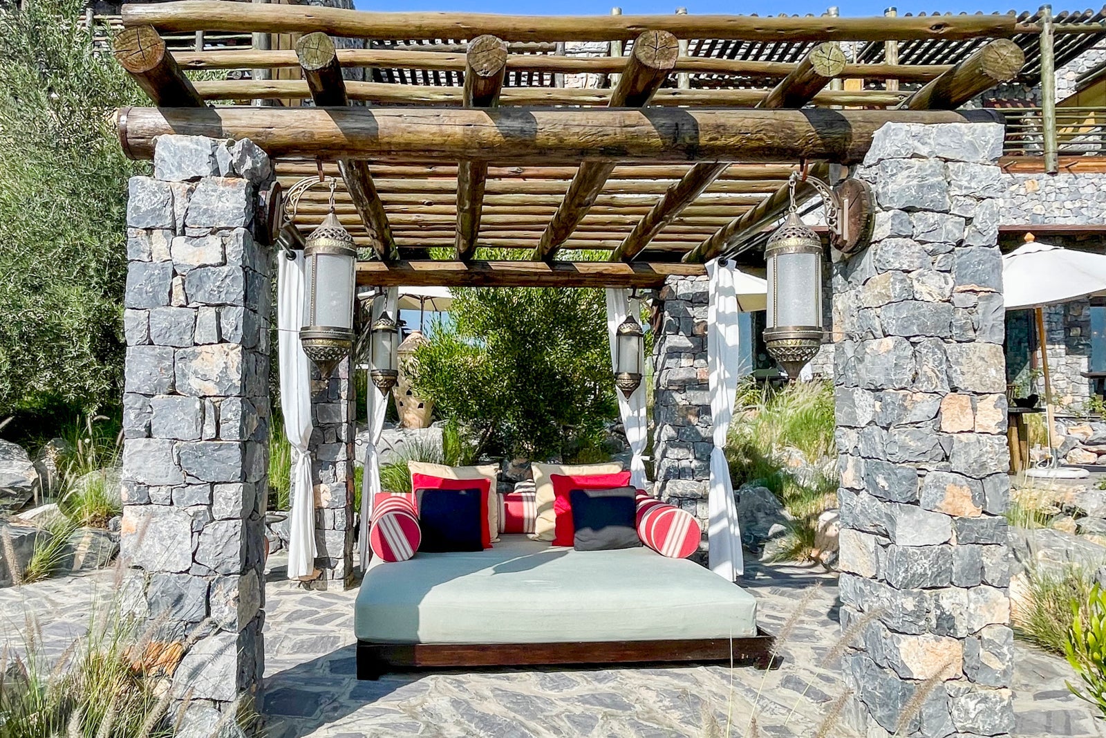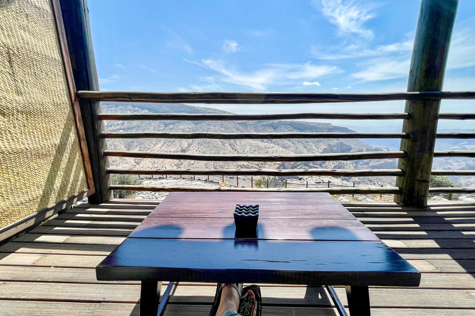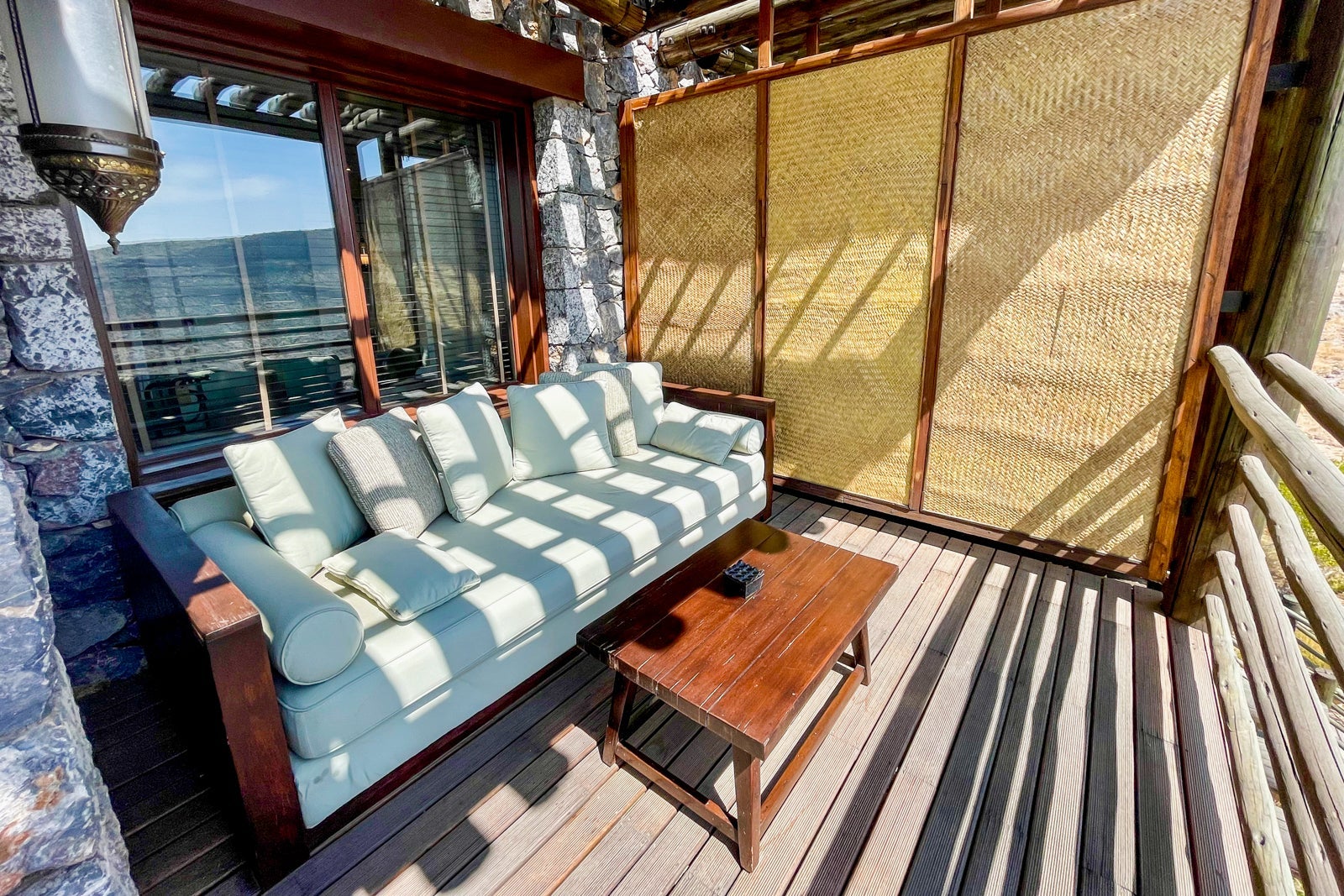 Moving outside, I was greeted by spectacular views of the craggy Jabal Akhdar mountain range and canyons, all the better to enjoy sitting on the large, comfortable daybed. A straw partition between rooms provided a sense of seclusion and relaxation while I watched the sun rise or set.