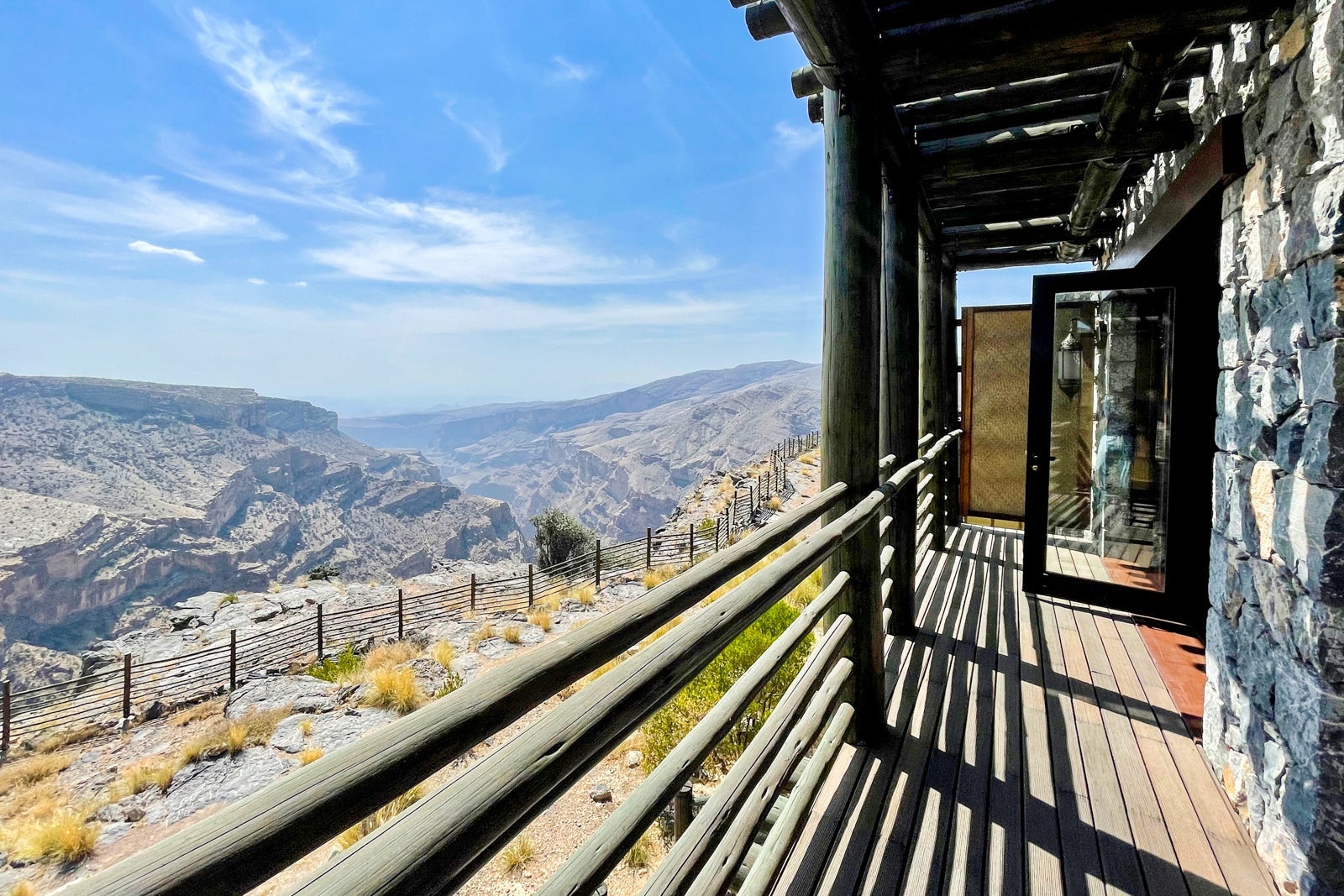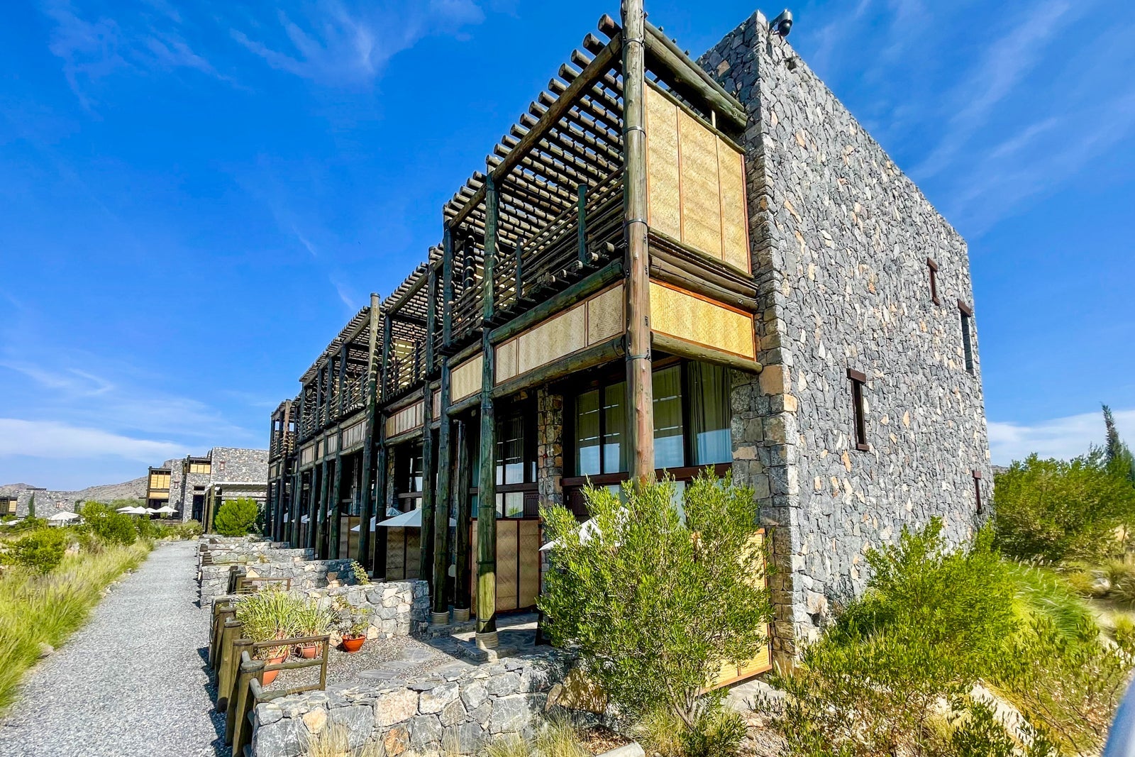 Alila Jabal Akhdar is a luxurious mountain retreat owned by Hyatt. Located in the Al Hajar mountain range of Oman, a 2 1/2-hour drive southwest of Muscat, the property is perched at 6,500 feet above sea level, offering breathtaking views of the surrounding mountains and deep canyons.