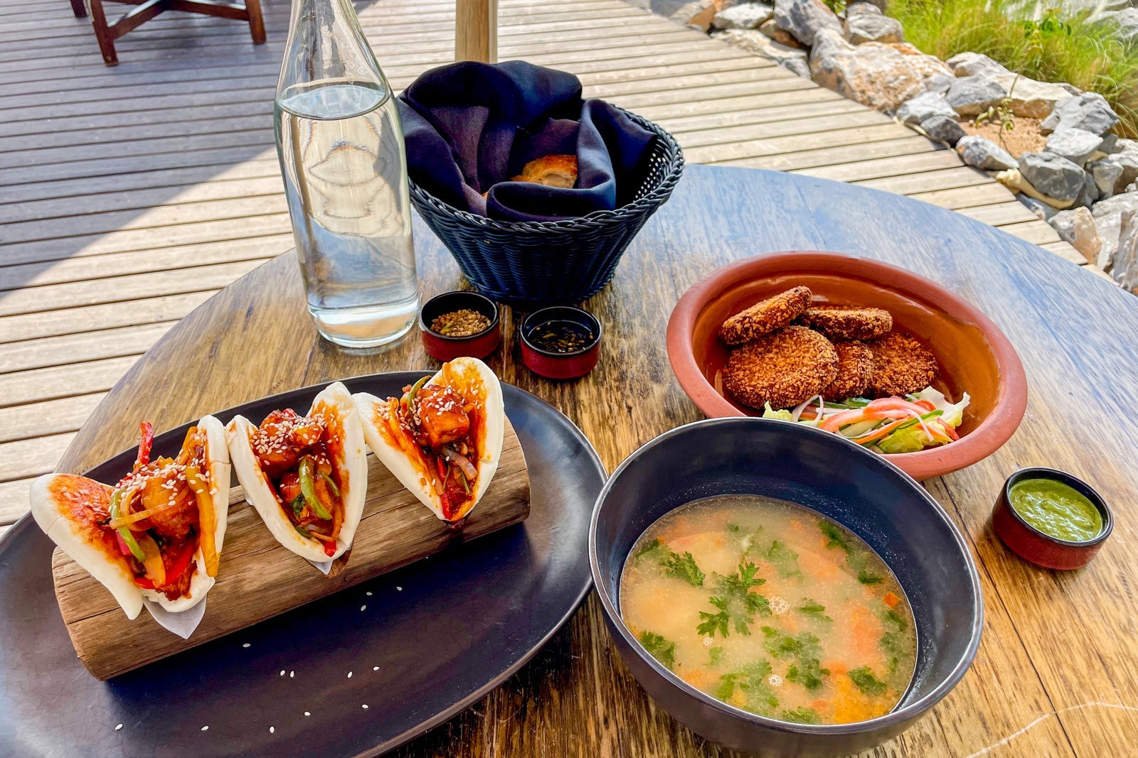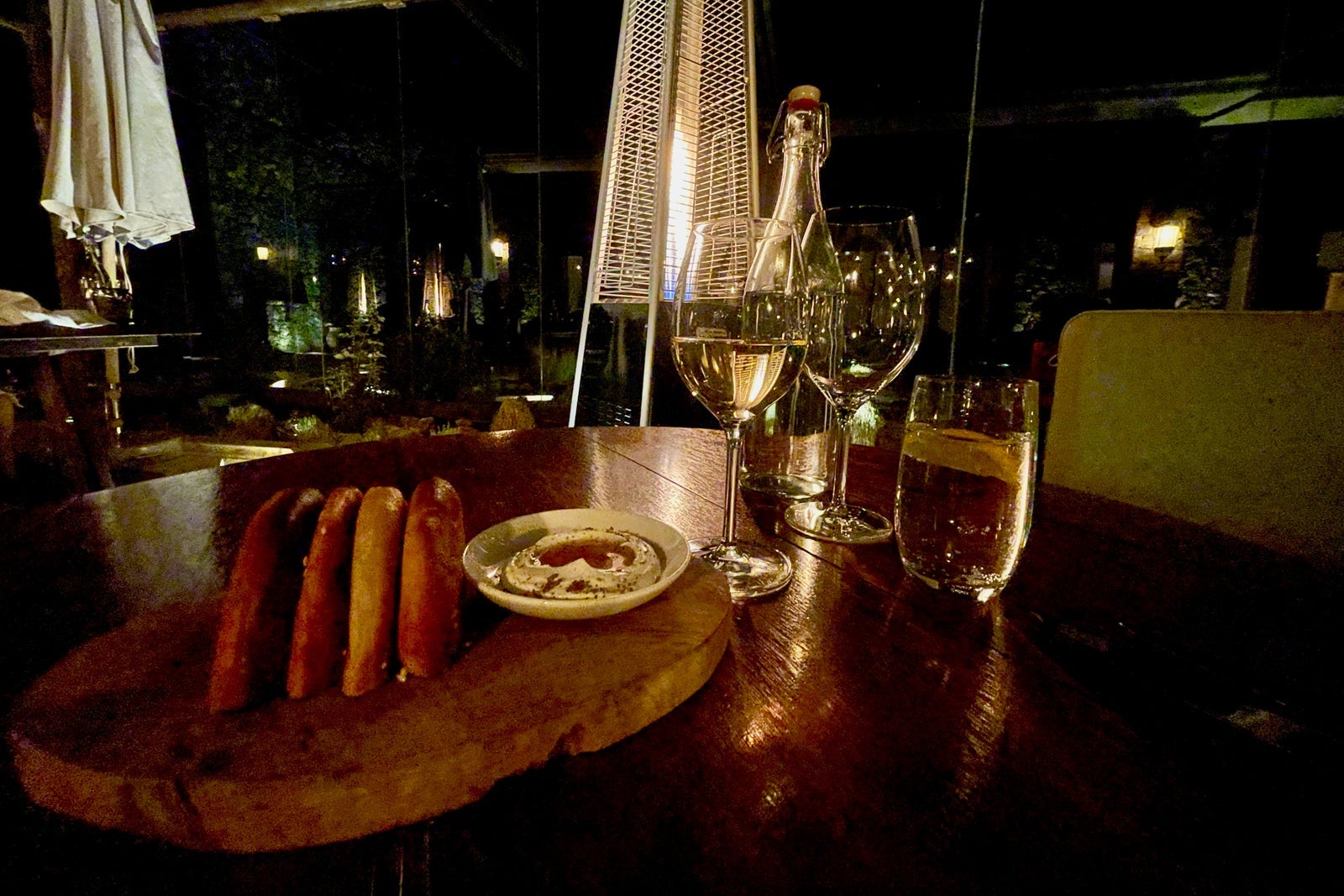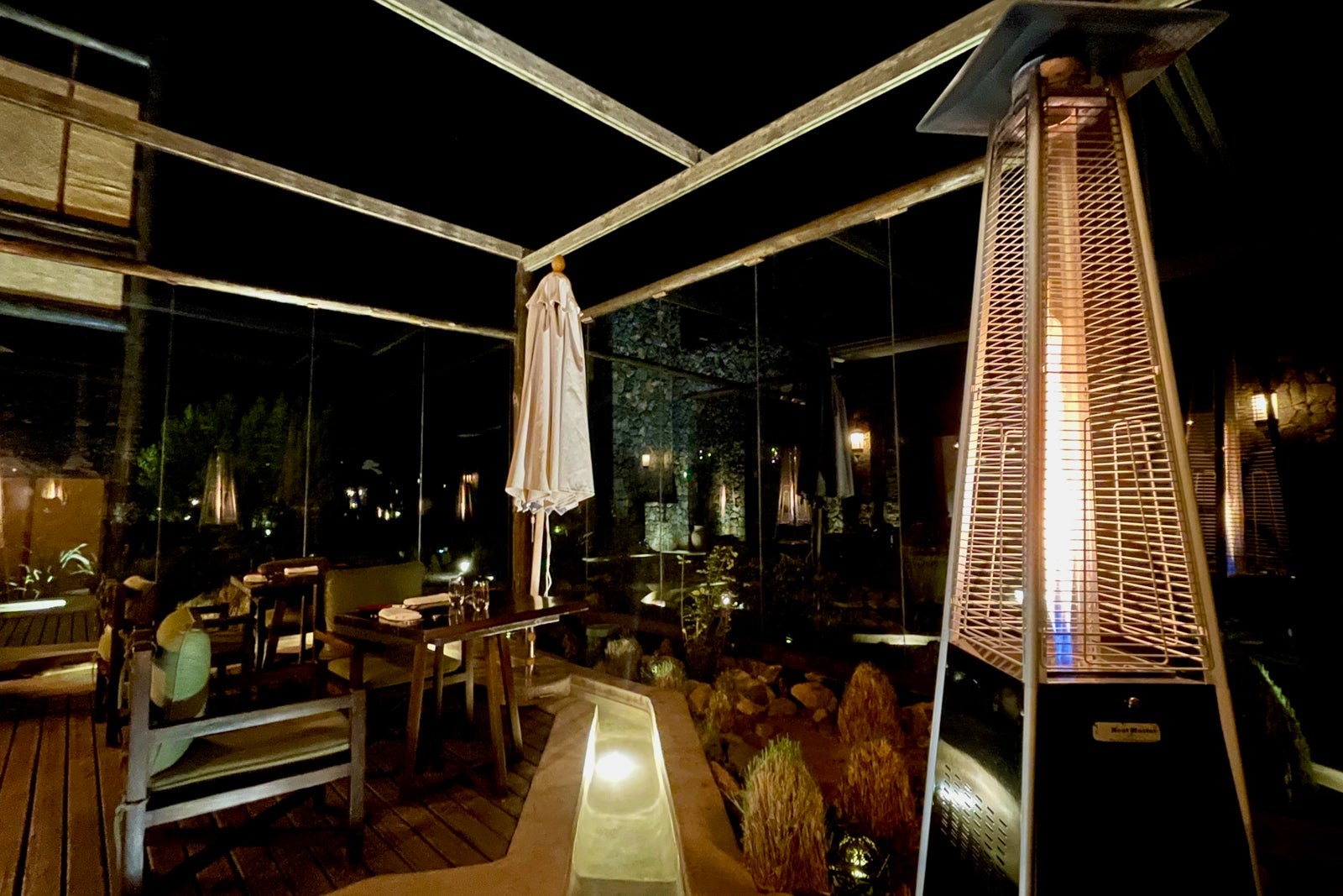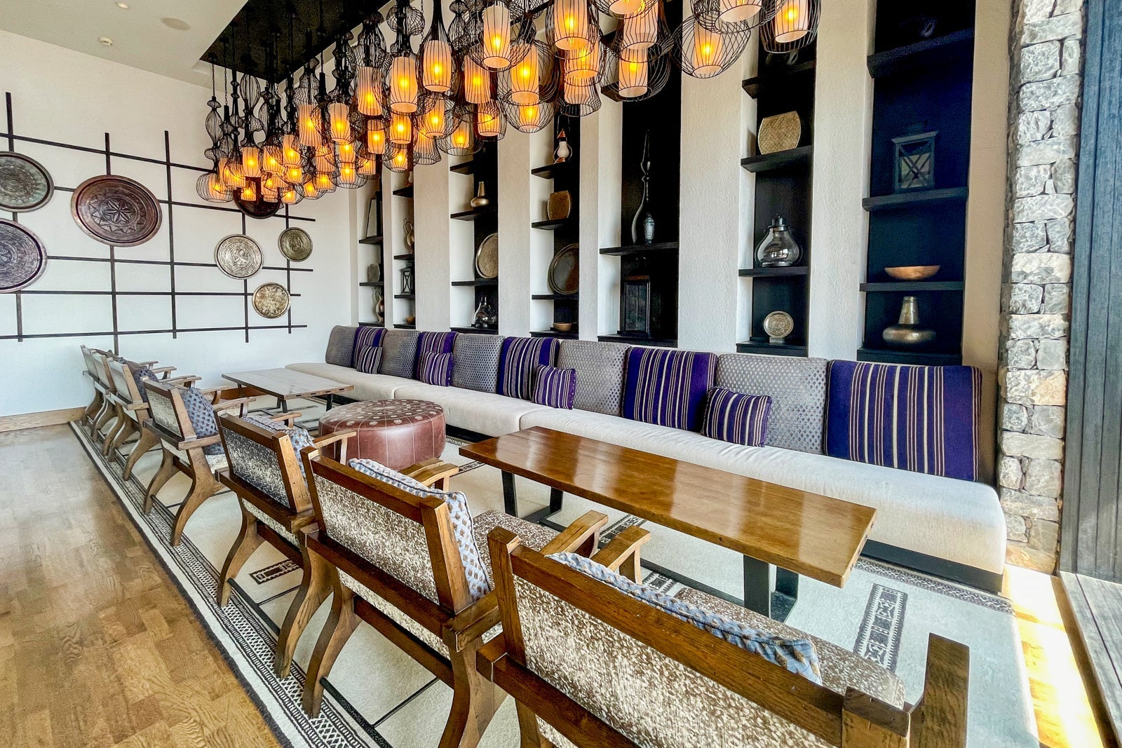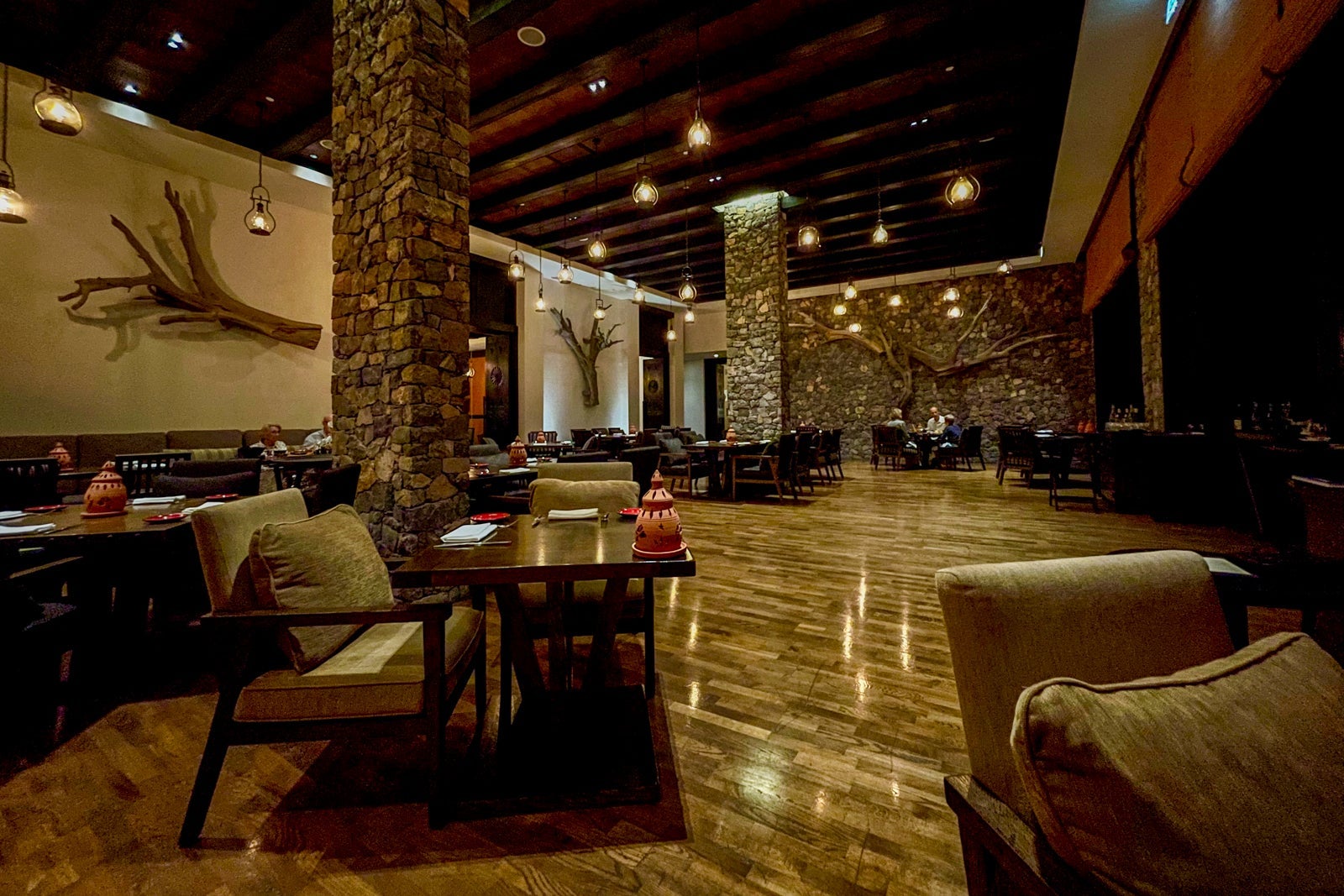 The Jupiter Restaurant is the more formal setting and is best for breakfast and dinner. You can sit outside — recommended if the weather permits — or inside the dining room. It felt sublime sitting outside thanks to perfect evening temperatures during my visit, the calming sounds of running water from the fountains, relaxing Arabic string-forward music and the homey warmth of the gas heaters creating a cozy ambience.