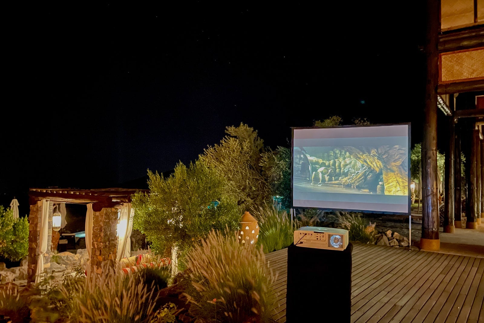 Another highlight was a complimentary stargazing session at 9 or 9:30 p.m., where a very friendly and knowledgeable instructor brought a telescope out and pointed out the major planets and constellations. They also set up an outdoor projector at the Rose Lounge for the evening movie, which was one of the films in the "Indiana Jones" franchise on the first night.