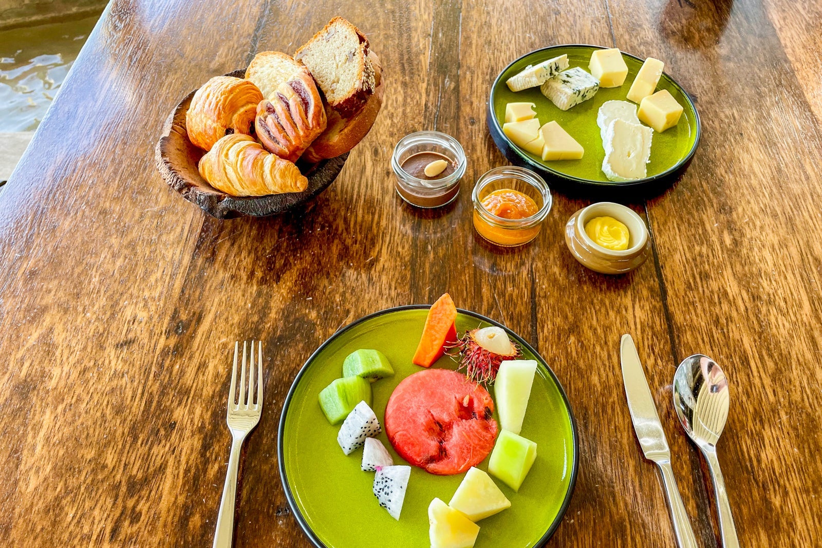 Highlights for me included a succulent Japanese soba noodle omelet; fresh orange, pomegranate and watermelon juices; a cheese board; soft and doughy bread; fresh fruit platters; and a homemade almond Nutella-style spread, which you can purchase a jar of to take home.