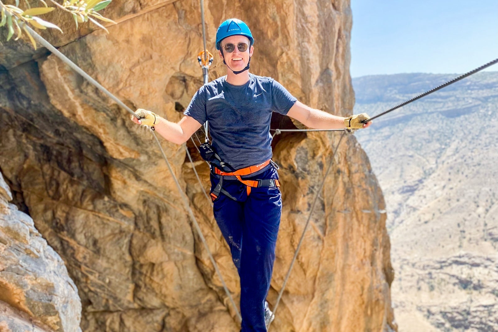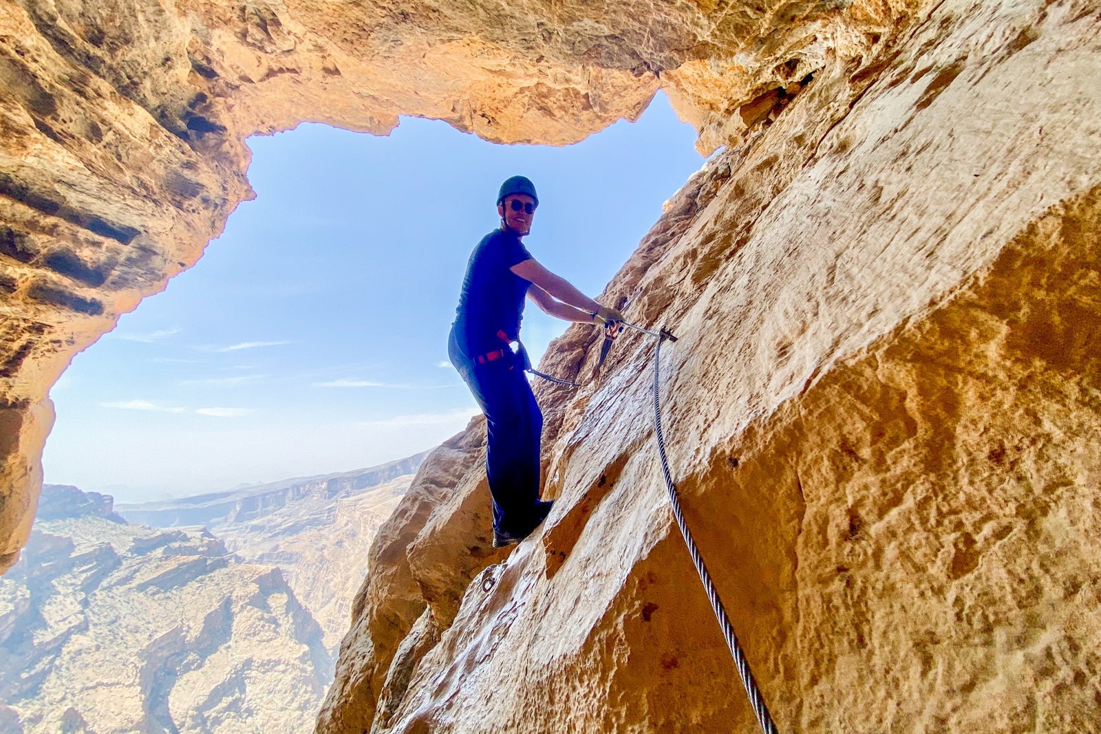 I signed up for the 90-minute via ferrata, a combination abseiling and ropes course, which cost 70 Omani rial (about $182). It ended up being just me and the instructor, and I was given the choice of beginner or intermediate level, of which I chose the latter. It was quite challenging but great for someone working on their fear of heights, and the canyon views were breathtaking. I liked the nice touch of a staff member waiting with a cold towel and fresh orange juice after the activity.
