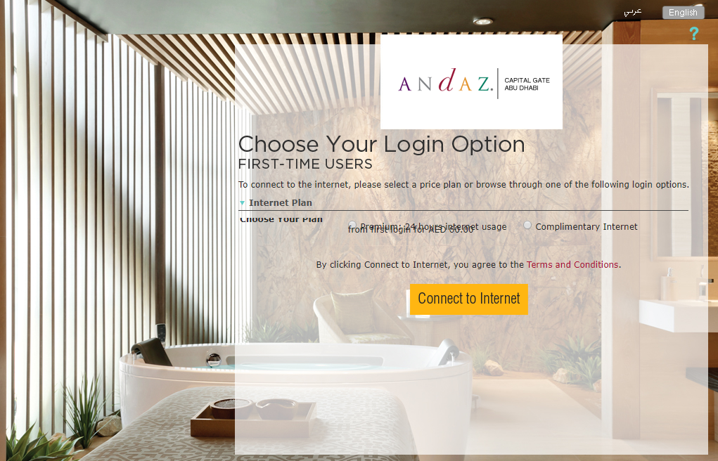 You could use the complimentary Wi-Fi, or you can pay 60 dirhams (about $15) for 24 hours of premium internet.