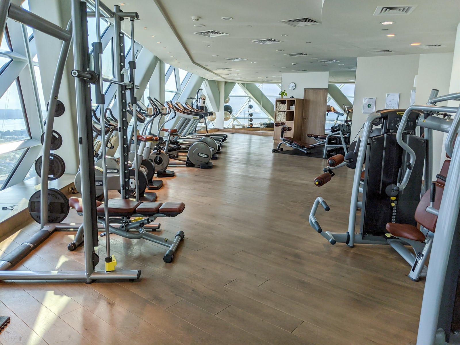 For weight training, there was one weightlifting bar and mat, one Smith machine, various free weights with two benches and five resistance machines. There was also a punching bag, various exercise balls and medicine balls.