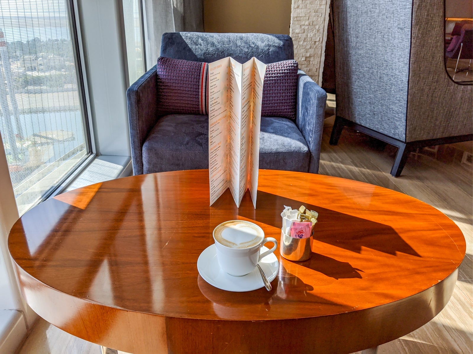 Hotel guests could order complimentary tea and coffee all day, either to drink in the lounge or to take away.
