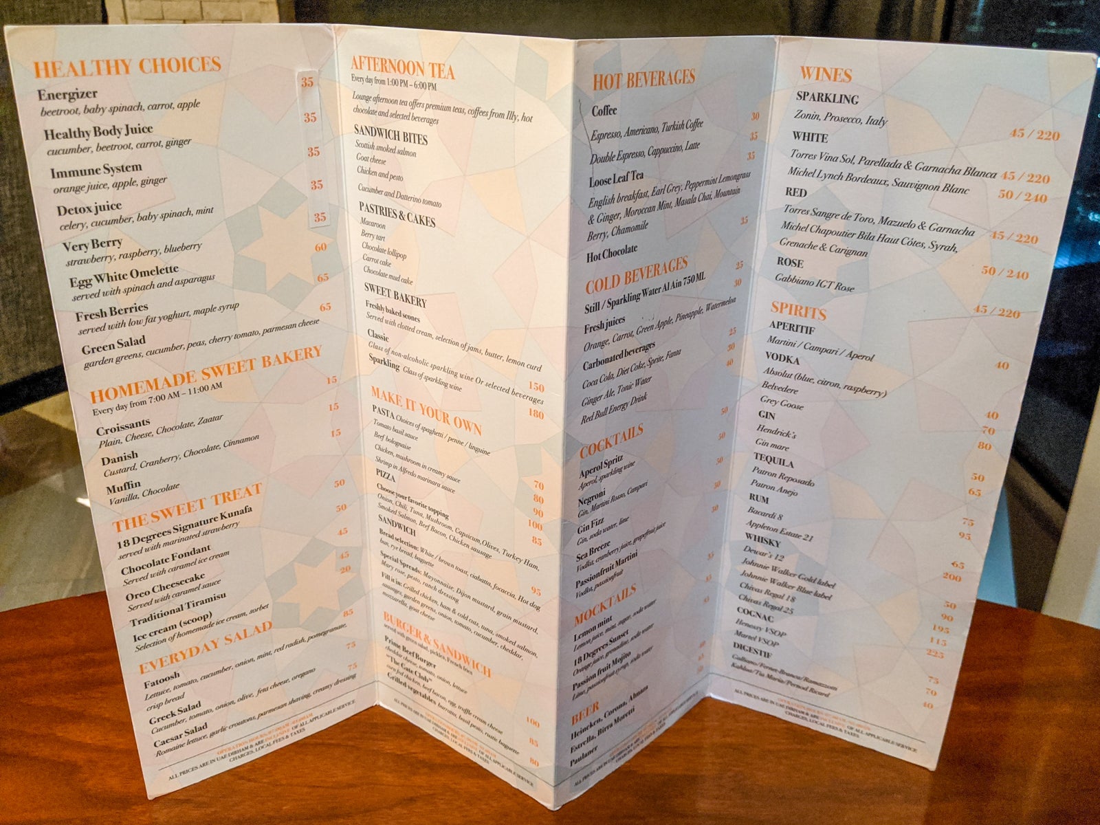You may also be able to get a snack or drink at the pool bar on the 19th floor or at 165 below on the Capital Gate ground floor, but the opening hours for these venues was unclear when I was there.