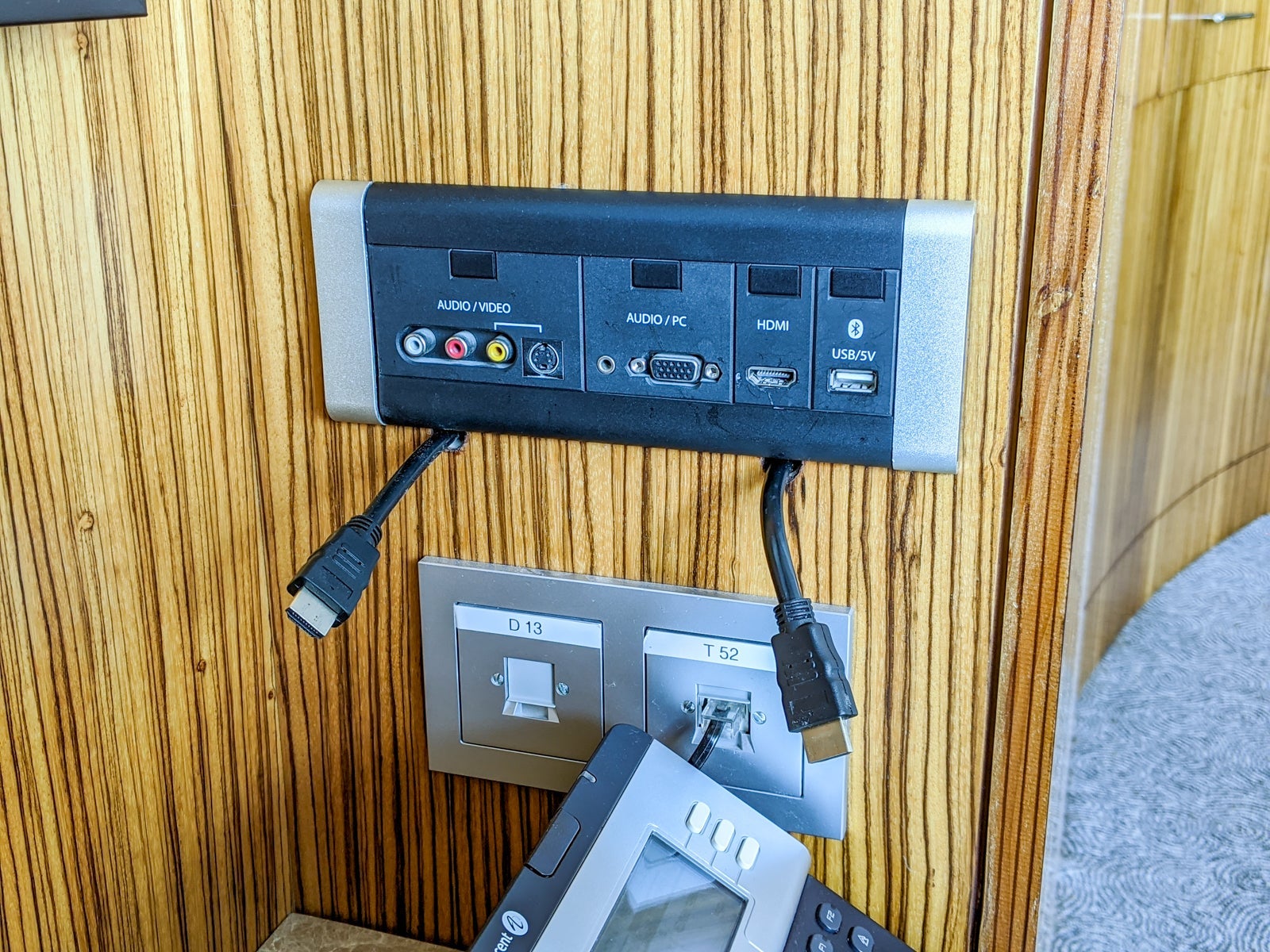 There were ledges on both sides of the bed, each with light controls and one Type G power outlet (the kind with the rectangular slots that's standard in the U.K. and its former colonies and protectorates). There was a large bench at the foot of the bed that was good for luggage or sitting.