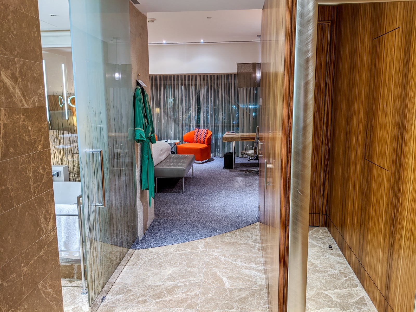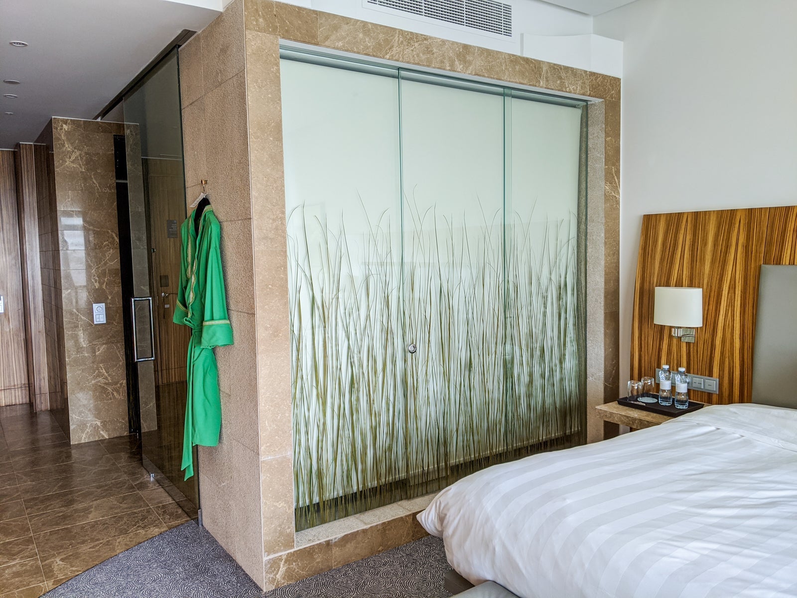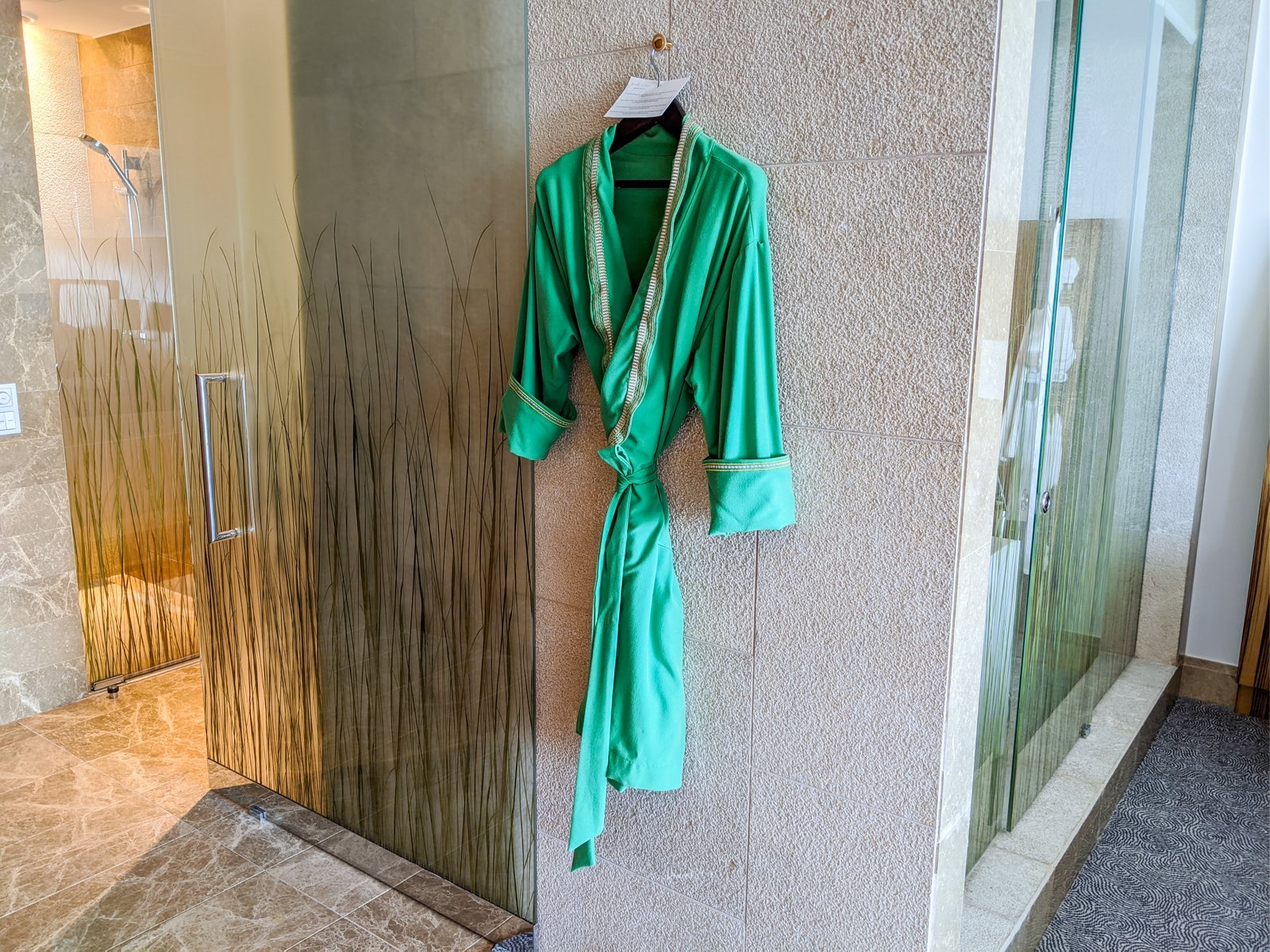 Walking back toward the room's entrance was a green robe hanging. I initially though this was a bathrobe, but an Andaz host said it was designed for guests to wear around the hotel if they wished. I didn't see any guests wearing their robes around the hotel during my stay, though.