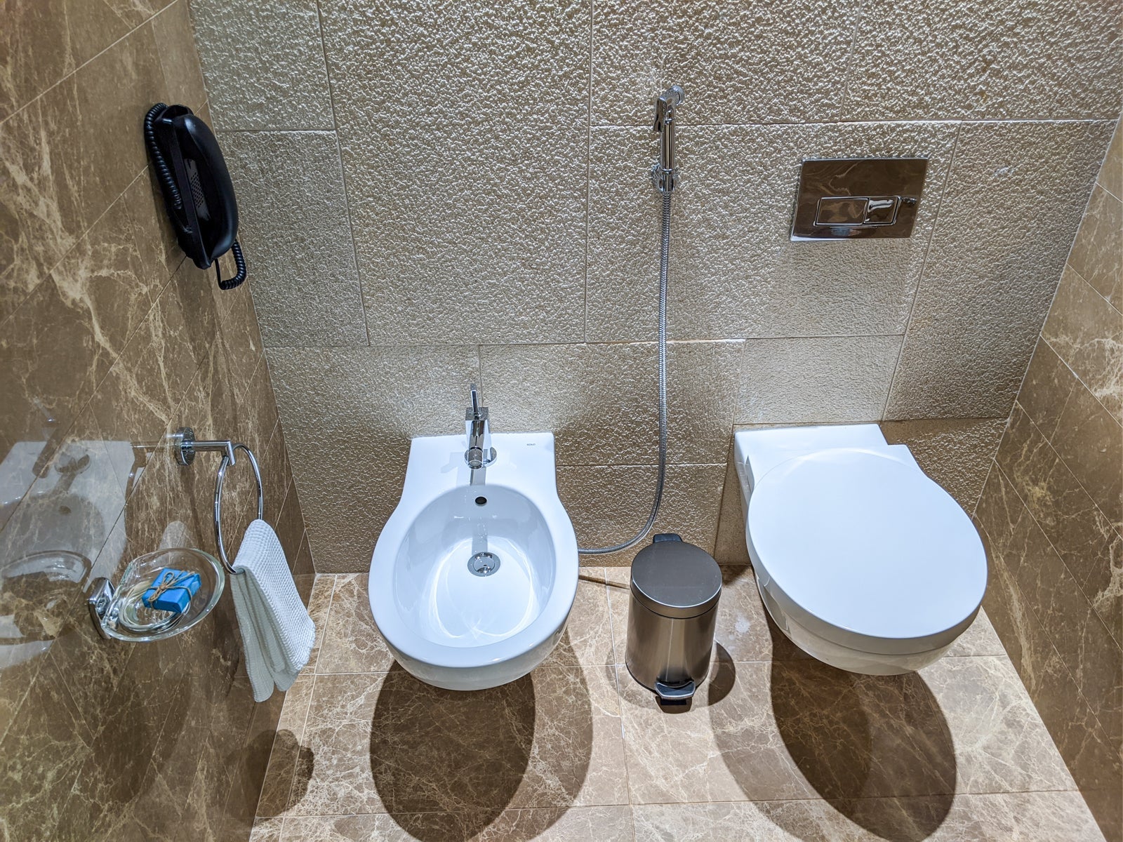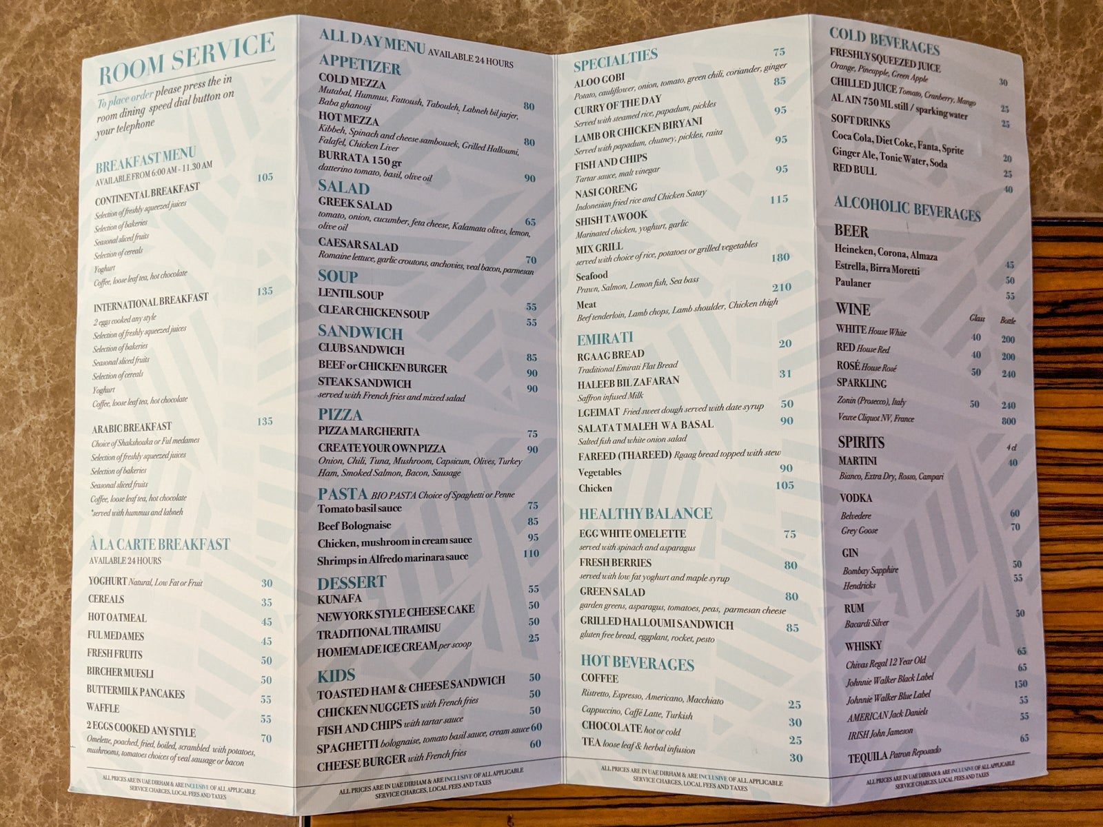 There was also 24-hour room service. I tried room service one night, and it took 33 minutes for my order to be delivered. I ordered a club sandwich for 85 dirhams (about $25) and a Paulaner beer for 55 dirhams (about $15).