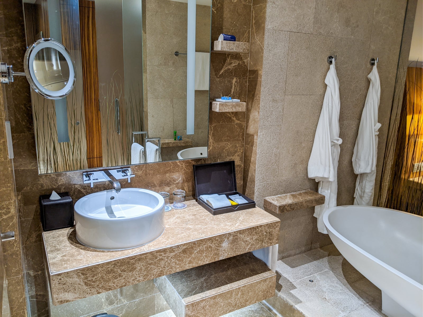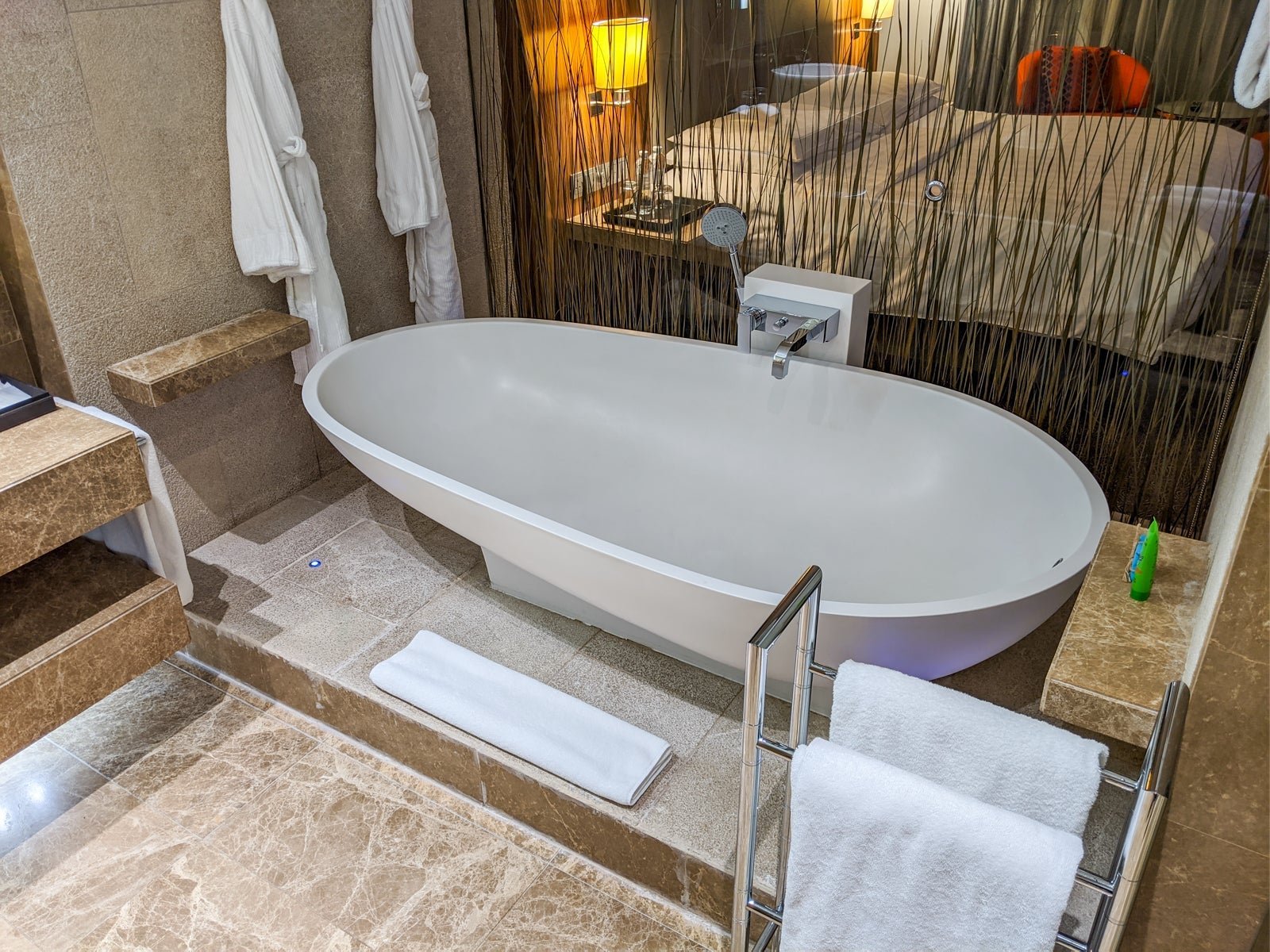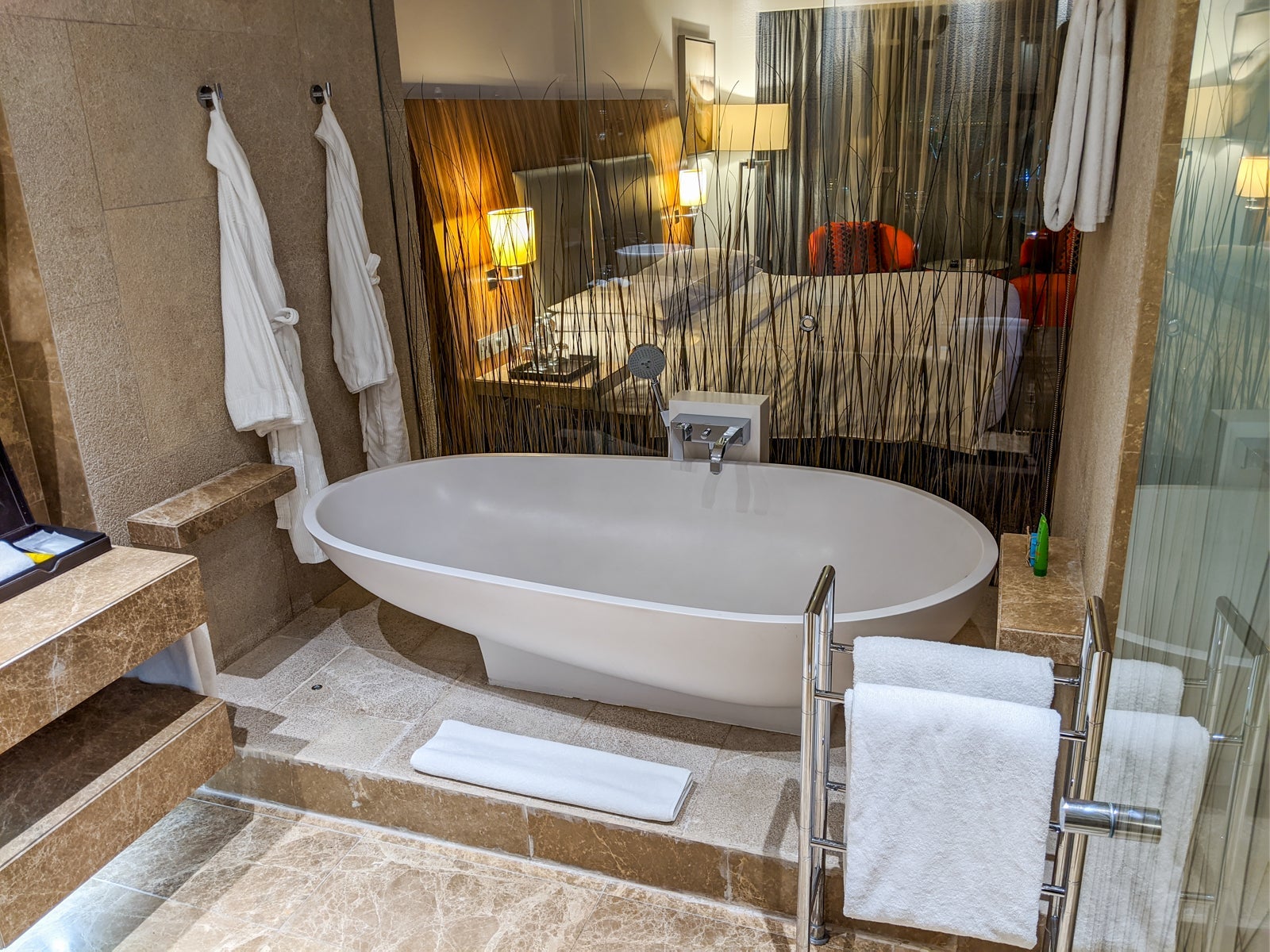 I enjoyed the master light switches on both sides of the bed, since this made turning off lights at bedtime easy. And the lighting accents around the bathtub and above the minibar and television made the room look particularly nice.