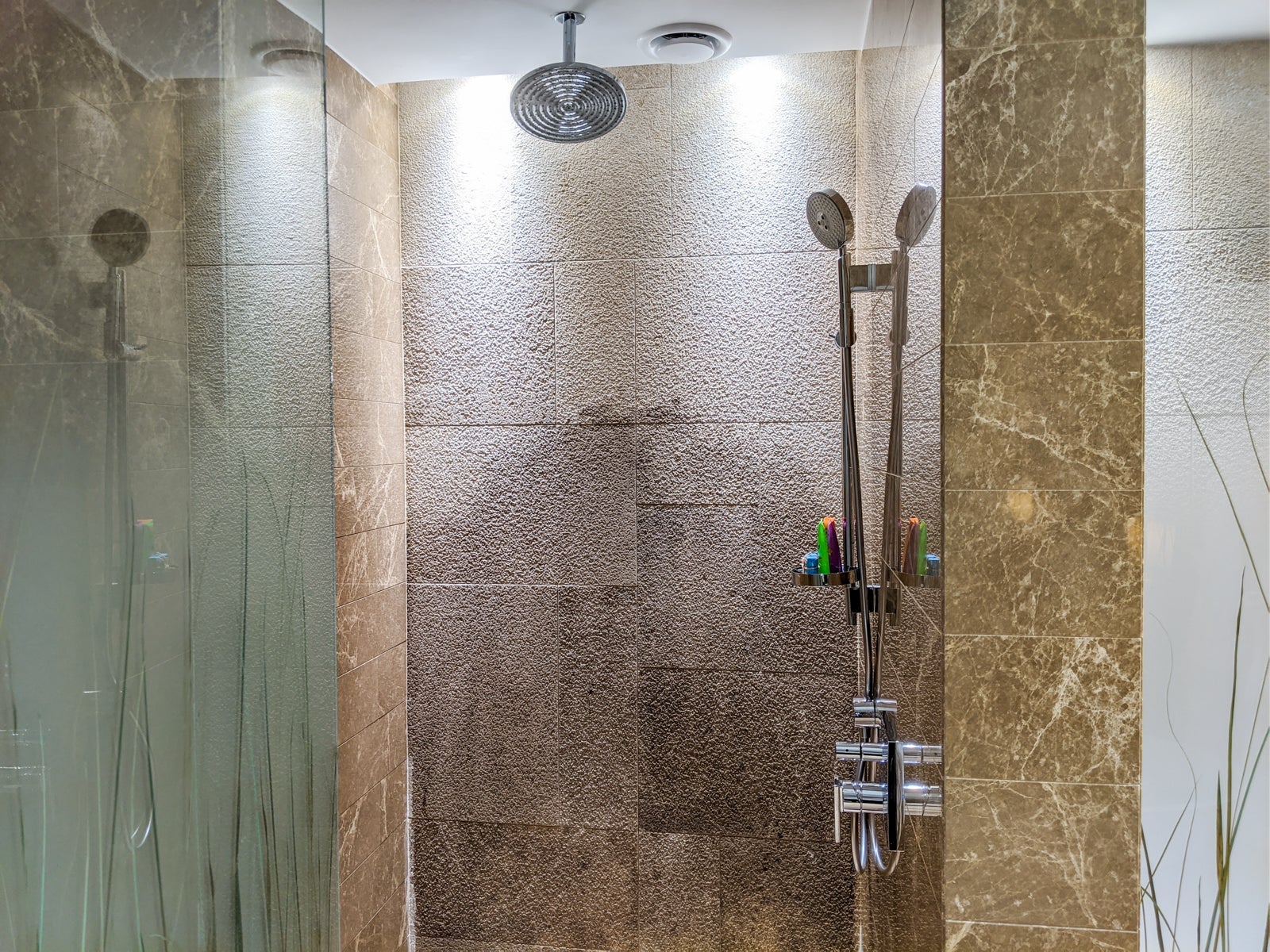 The other door contained a large shower stall. There was a handheld shower head that could be placed in a holder, as well as an overhead shower. I love a good rainfall shower, but this one wasn't very strong, so I mainly used the handheld.