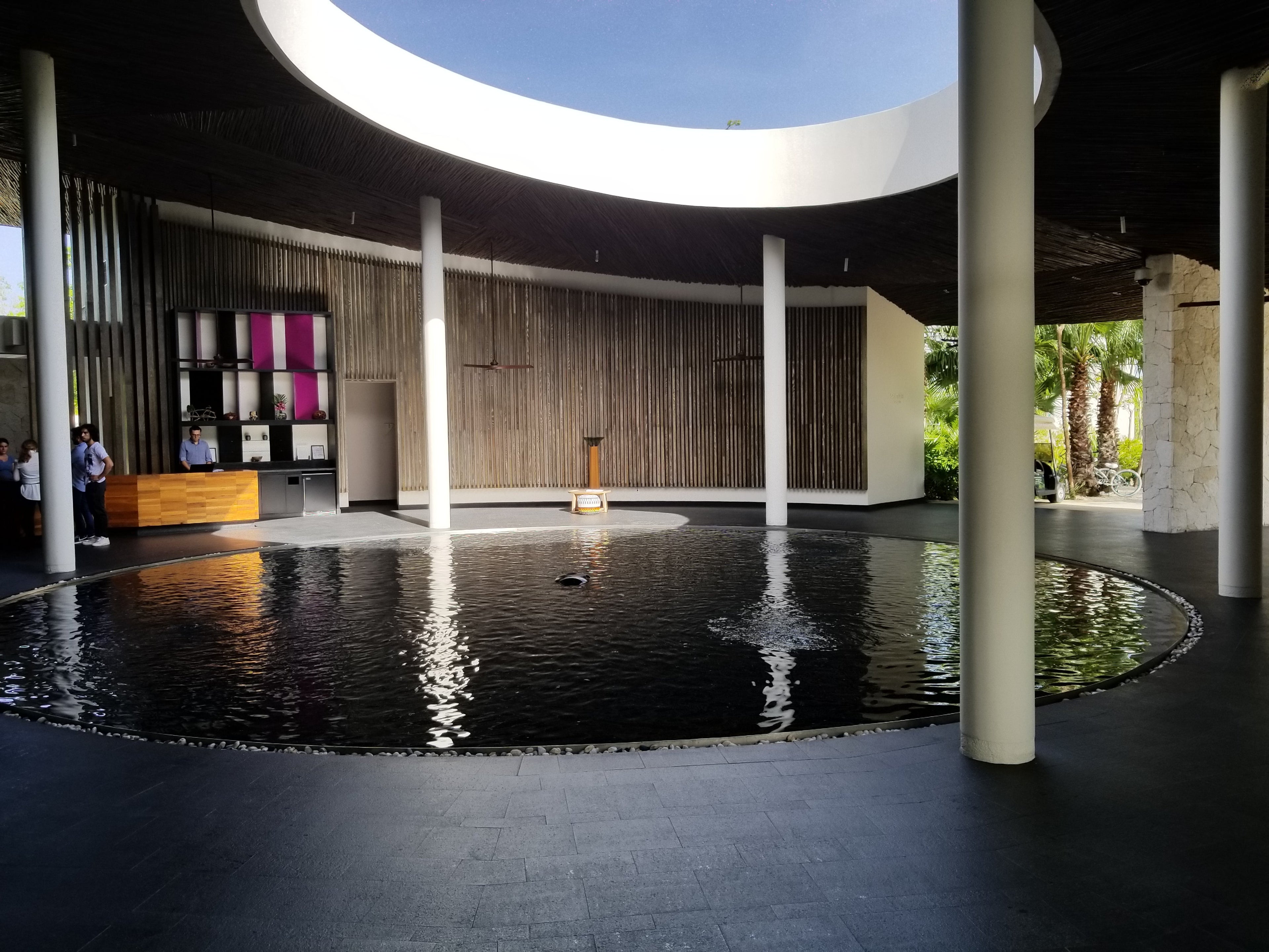 Mayakoba is a complex that boasts four luxury hotels (Andaz, Banyan Tree, Fairmont and Rosewood) on 600 acres about five miles north of Playa Del Carmen. At the entrance, a security guard at the gate greeted us and directed us to our hotel. Upon arriving, I was greeted by name (a nice touch) and welcomed into the lobby, also known as the Sanctuary, a tranquil oasis with a large decorative pool in the center. Like most Andaz lobbies, they were set up more like a comfortable lounge without a formal reception counter. A host checked us in on an iPad and gave us bottles of cold water and a tequila cocktail.