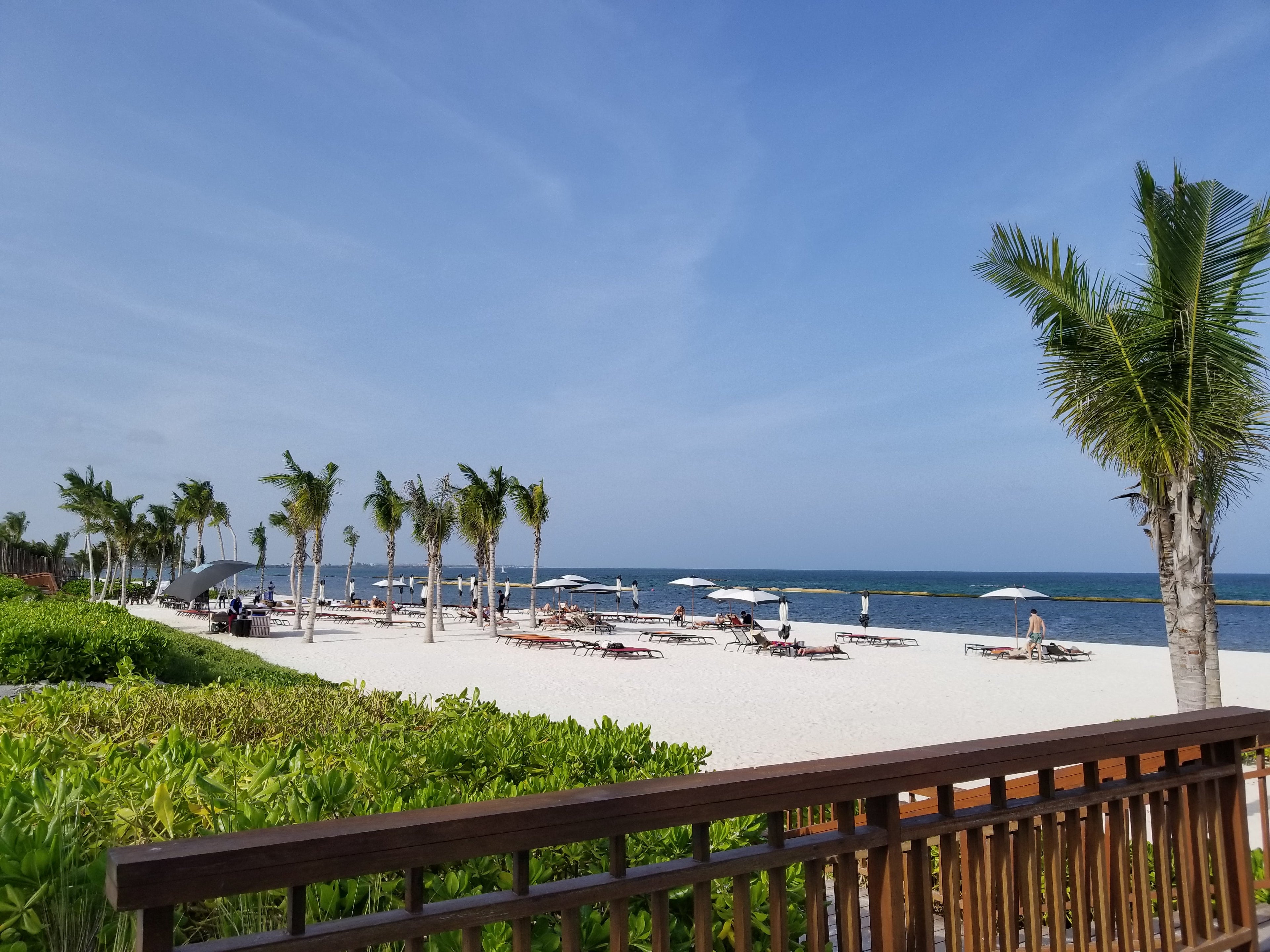 Seaweed washed onshore during much of the year, as it does along the entire Mexican Riviera, but Mayakoba had a staff of dozens who collected the seaweed every morning, took it away and turned it into fertilizer for the golf course. So there was very little seaweed on shore during the day.