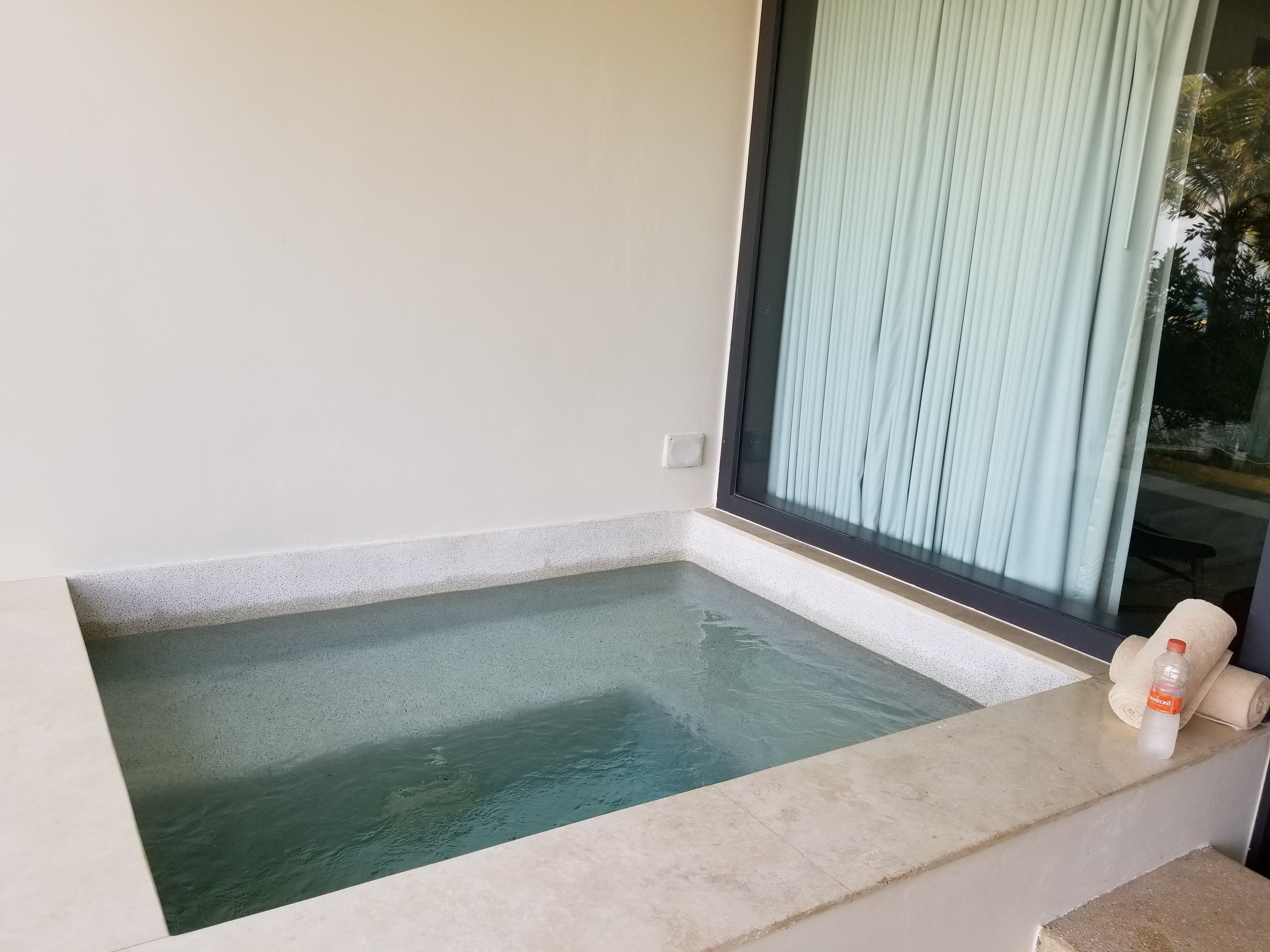 This was my first time in a room with a plunge pool, and I must say it was a really nice feature. About the size of a Jacuzzi, it had light underwater jets and space for four people to recline submerged.