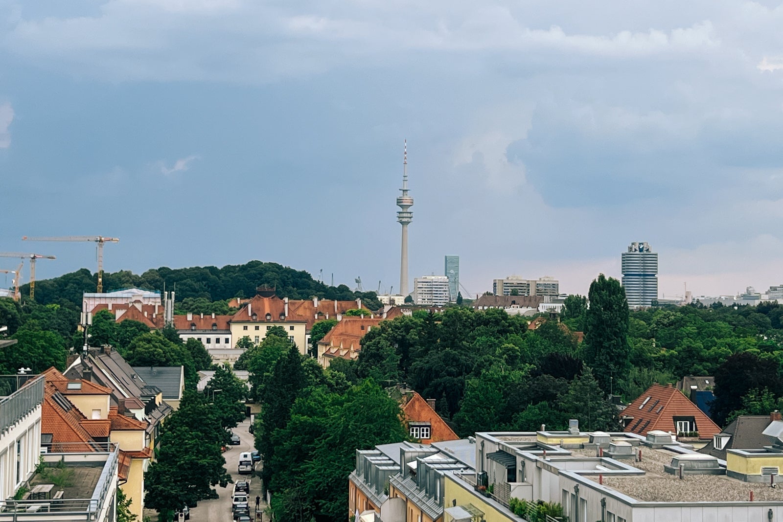 • The hotel's location isn't in central Munich but in the northern Schwabinger Tor neighborhood between the Olympic Stadium and the English Garden. It's a 10-minute walk to the Munchner Freiheit subway station and a short U-Bahn journey to central Munich.