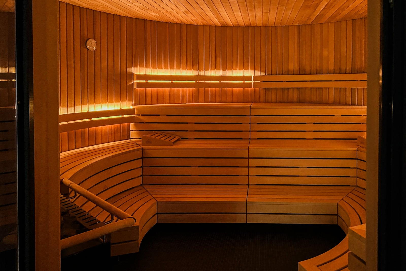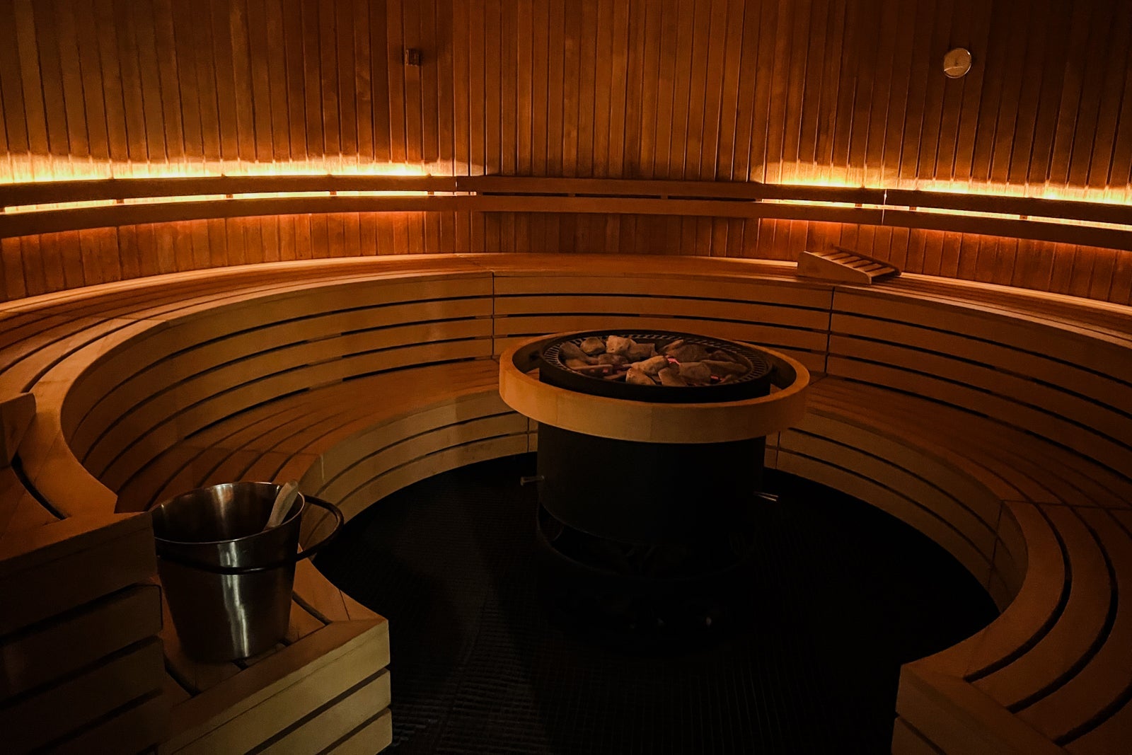 Those rooms are connected to a coed area with a steam room and two saunas. One sauna was set at 185 degrees, and one at 203 degrees.