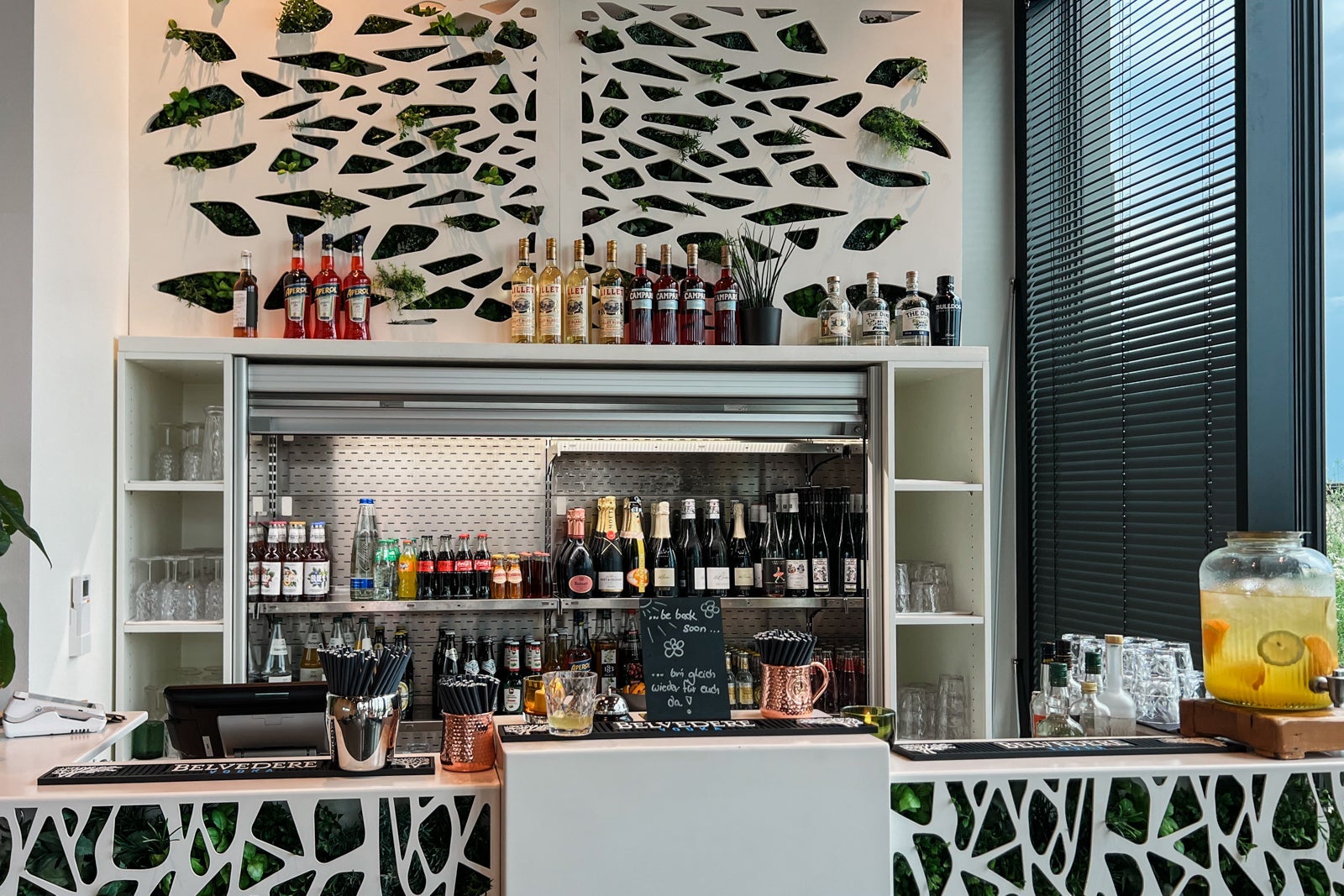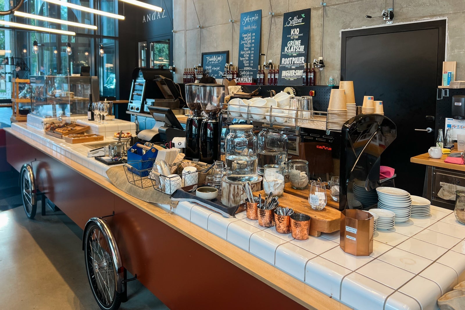 The Andaz Munich offers several dining options, including The Lonely Broccoli restaurant, which serves dinner and breakfast, Bicicletta & Terrace, a coffee bar in the lobby and M'Uniqo Rooftop Bar & Terrace on the roof.