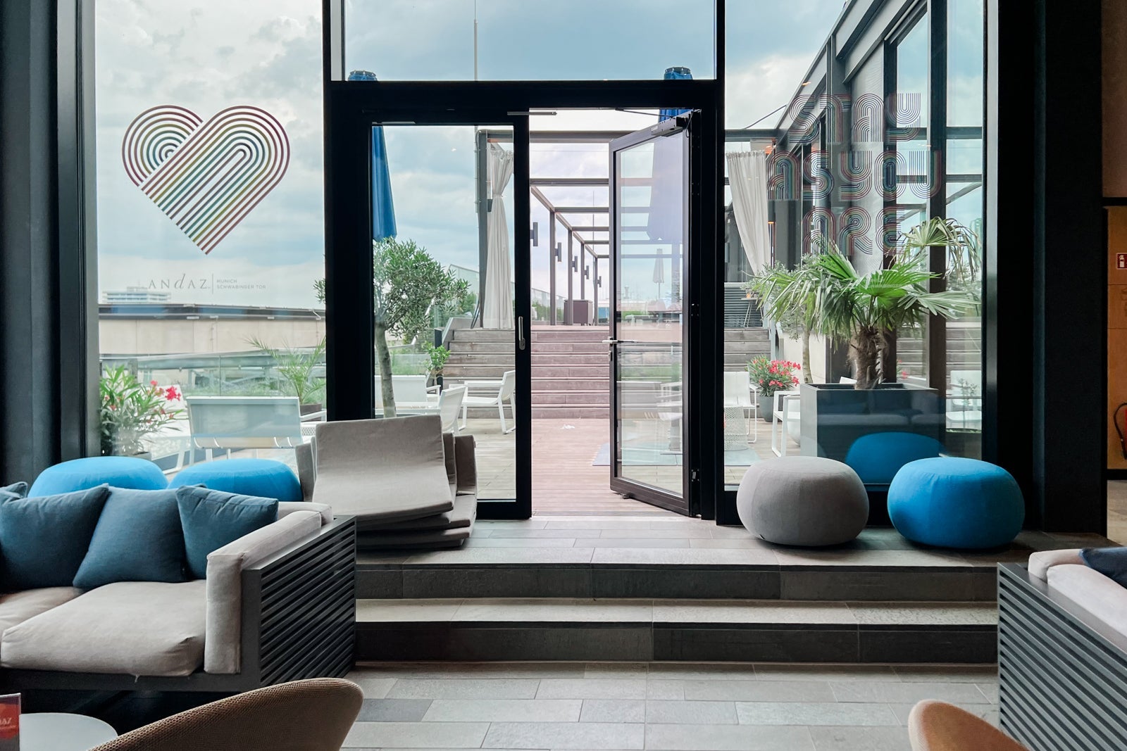 M'Uniqo Rooftop Bar & Terrace is the hottest ticket at the Andaz Munich. It's not open on Sundays and Mondays, so I didn't get to take advantage of it, but I did get a quick tour. It's sometimes closed for events and is only open in the evenings, so I strongly advise making reservations.