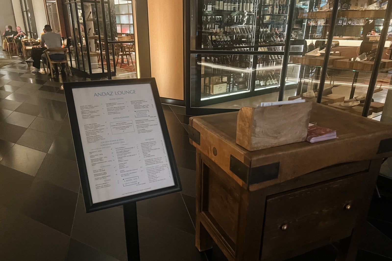 The Andaz Lounge Bar is a fun meeting spot in the main lobby with a wide variety of seating options, including chairs and benches, and little living room-style arrangements with couches.