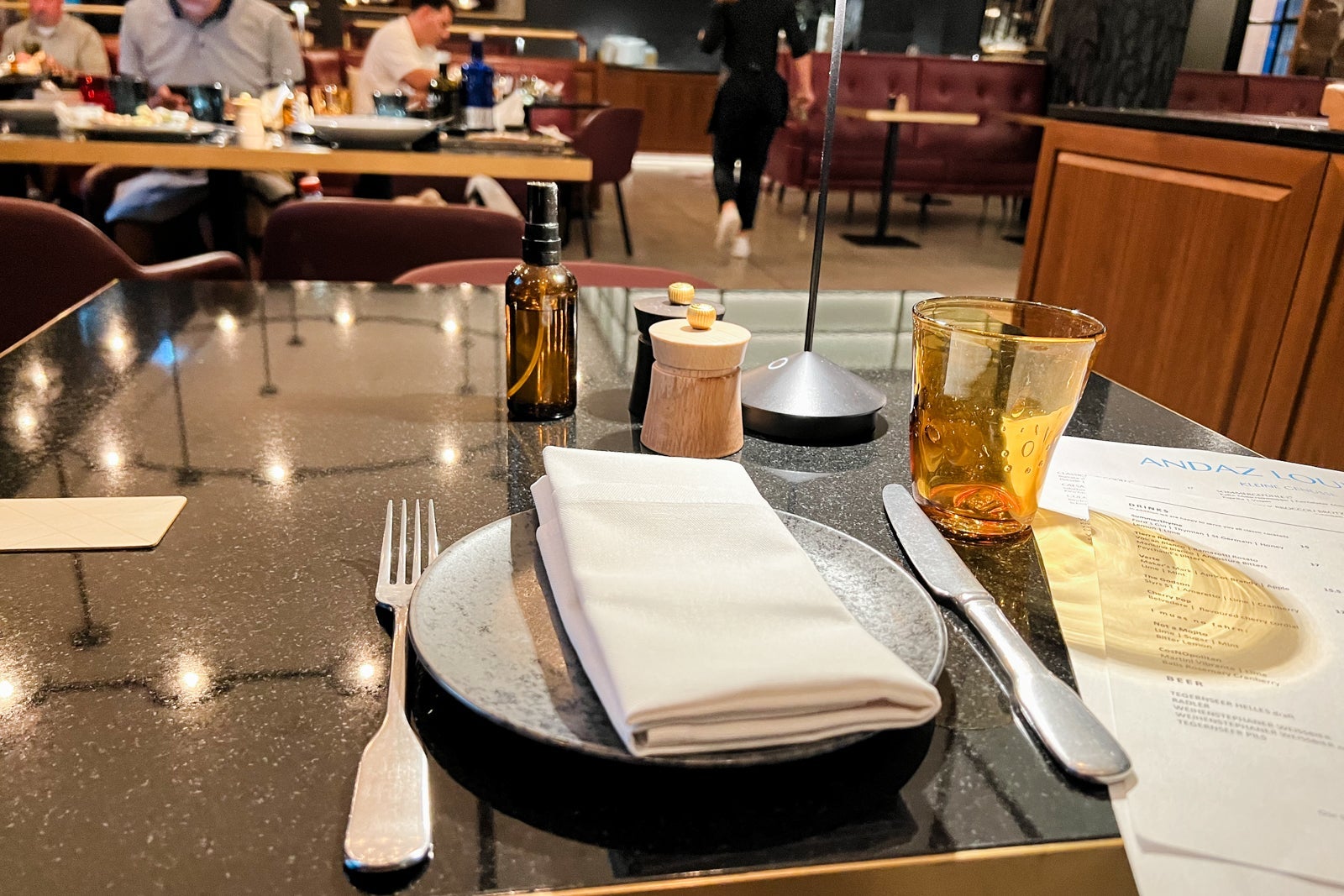 I experienced Andaz's room service once during my stay and was satisfied. The meal came quickly and was delicious. The extensive menu has the same offerings as the Andaz Lounge in the lobby.