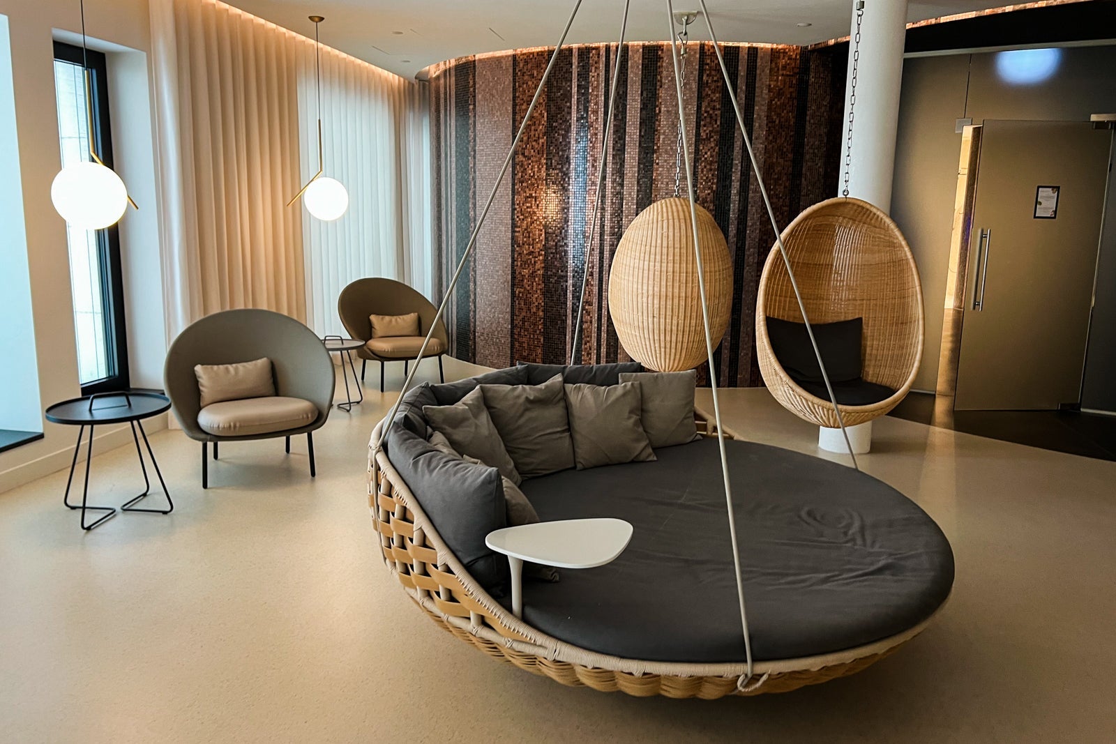There are also several relaxation areas, which were nearly deserted during my stay. I would have liked to hang out here for a few weeks instead of my few hours there. Hanging chairs, loungers and other seating options made for inviting areas tucked in various spots throughout the rooms. One of the rooms had a "very quiet" sign displayed prominently at the entrance for people who wanted a silent space to rest (or nap).