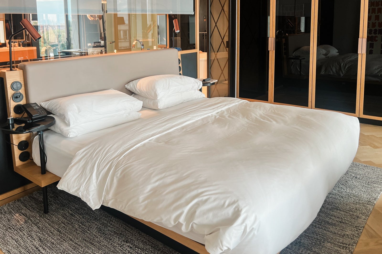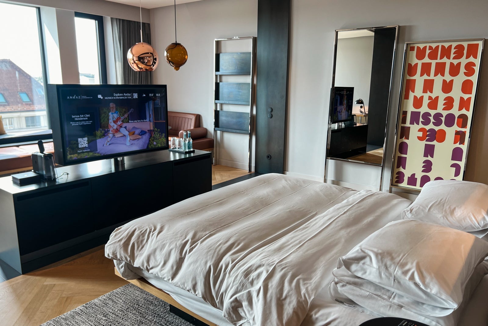 I was assigned room 505 at the Andaz Munich, which was a highlight of my stay. At check-in, I was upgraded to a huge junior suite with a king-size bed facing large light-filled windows.