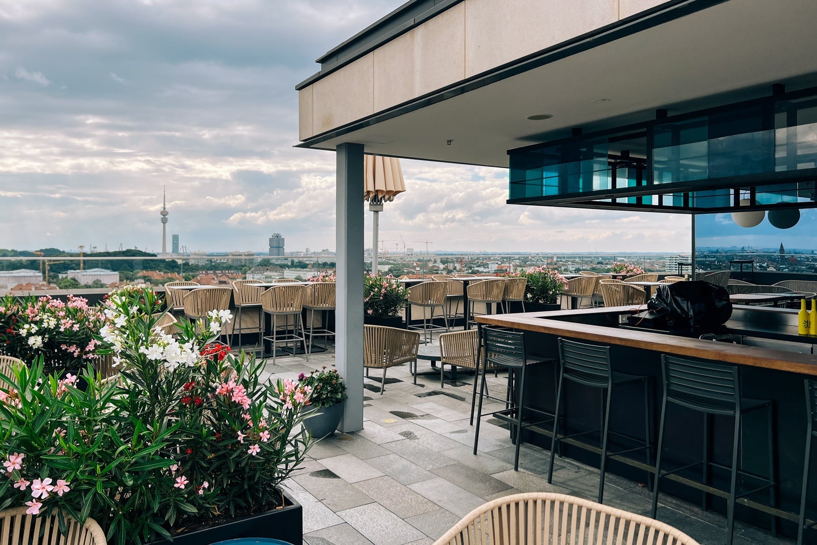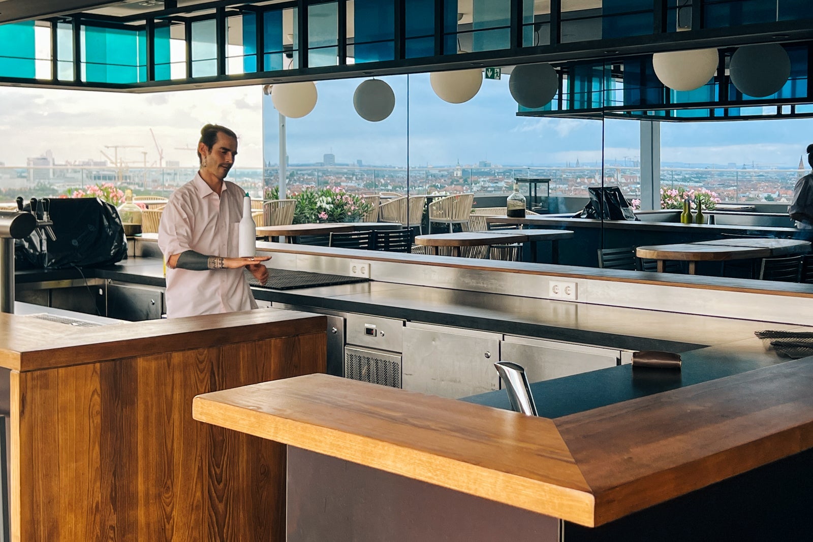 The hotel describes it as "Venice-inspired," but it's all about the wraparound views of Munich. Patrons can order sharing plates, pizza, cocktails and wine, and enjoy the breathtaking cityscape views.